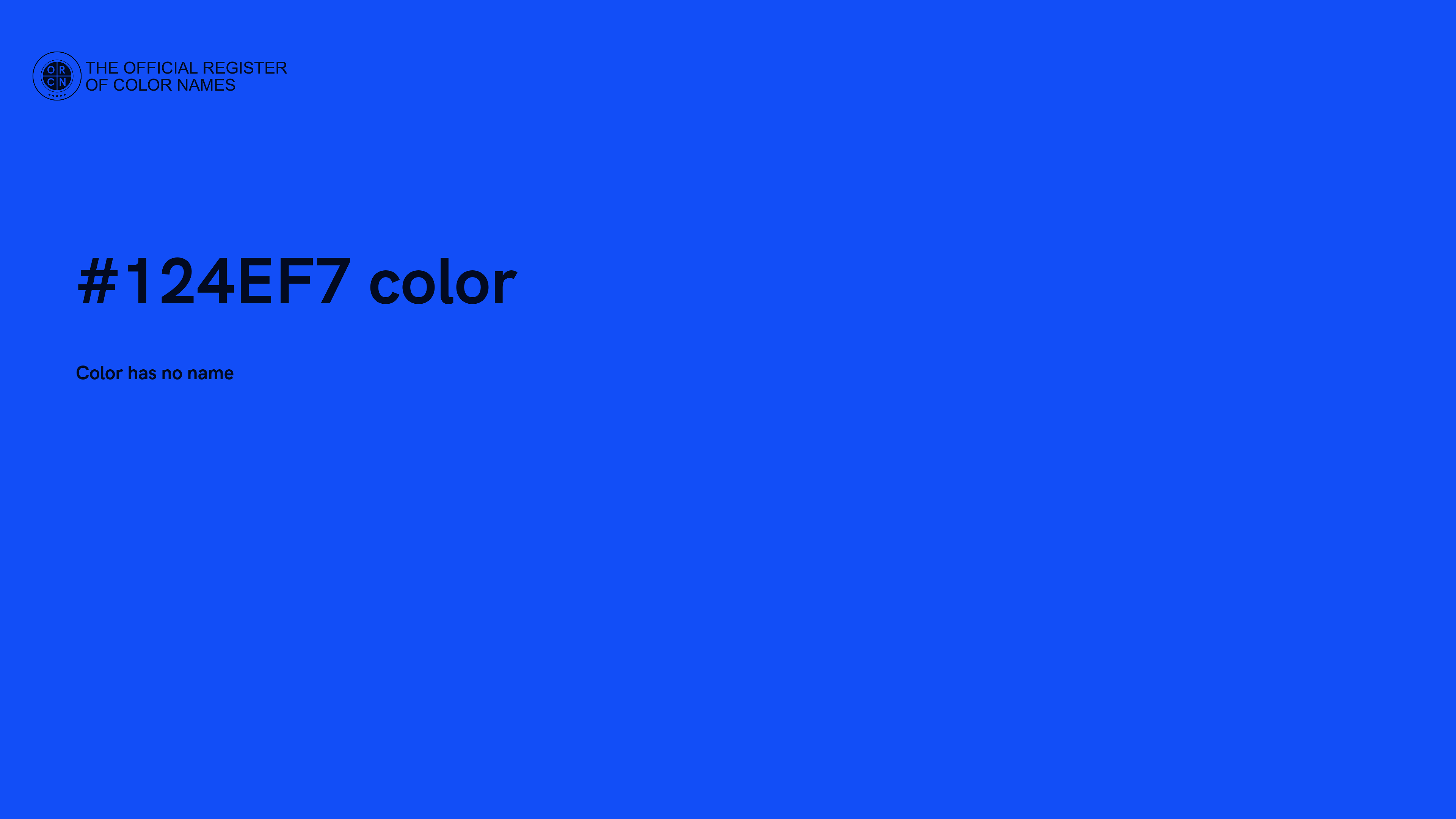 The digital color HEX #124EF7 belongs to the Azure Color Family featuring Full Saturation (Saturation Family) and Light (Brightness Family).