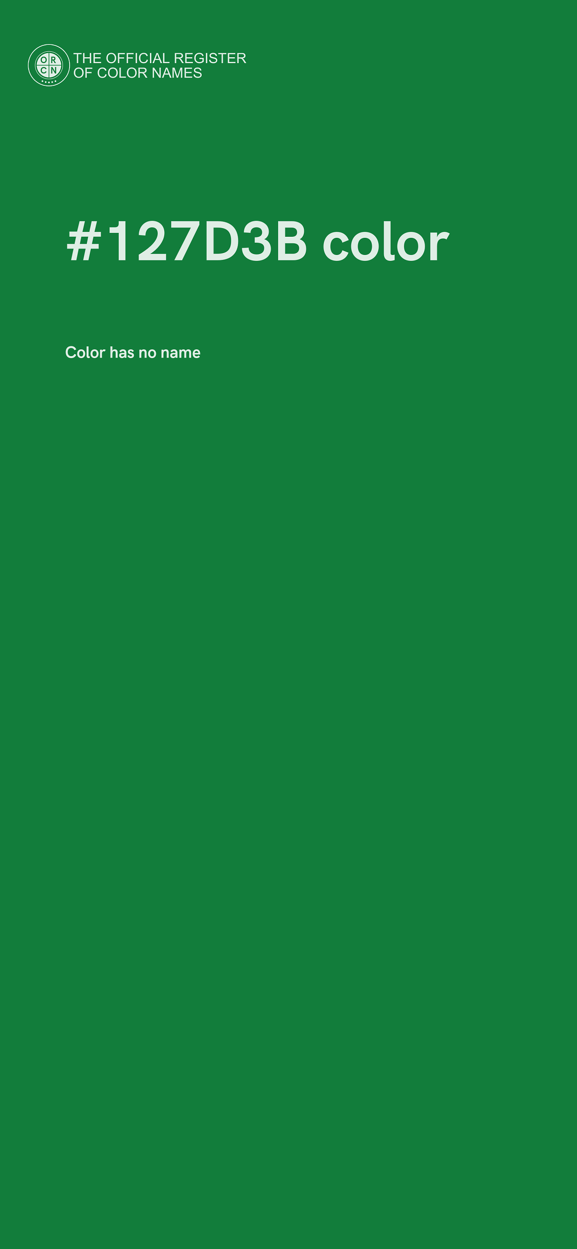 The digital color HEX #127D3B belongs to the Spring Green Color Family featuring High Saturation (Saturation Family) and Neutral (Brightness Family).