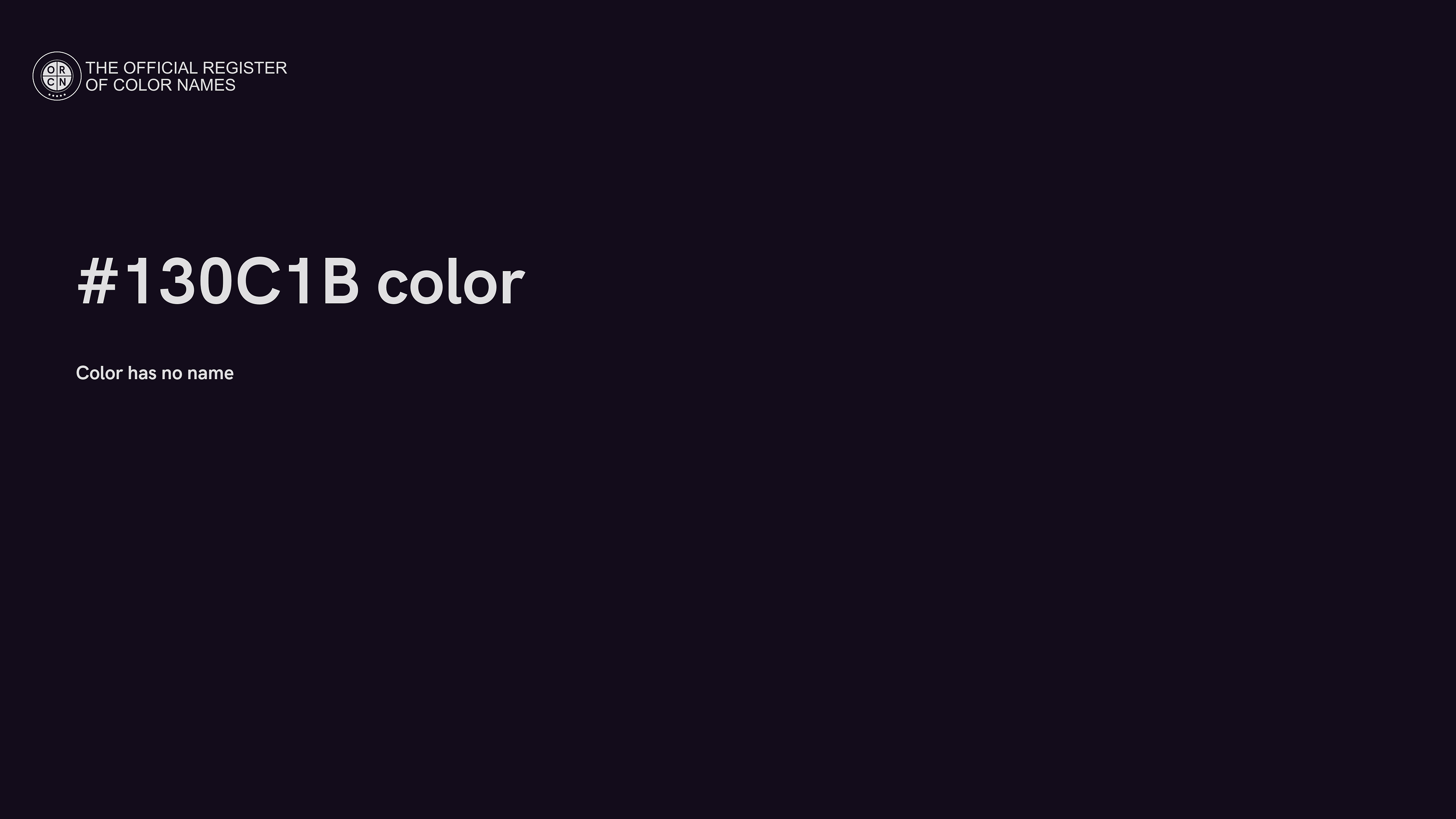 The digital color HEX #130C1B belongs to the Violet Color Family featuring Mild Saturation (Saturation Family) and Very Dark (Brightness Family).
