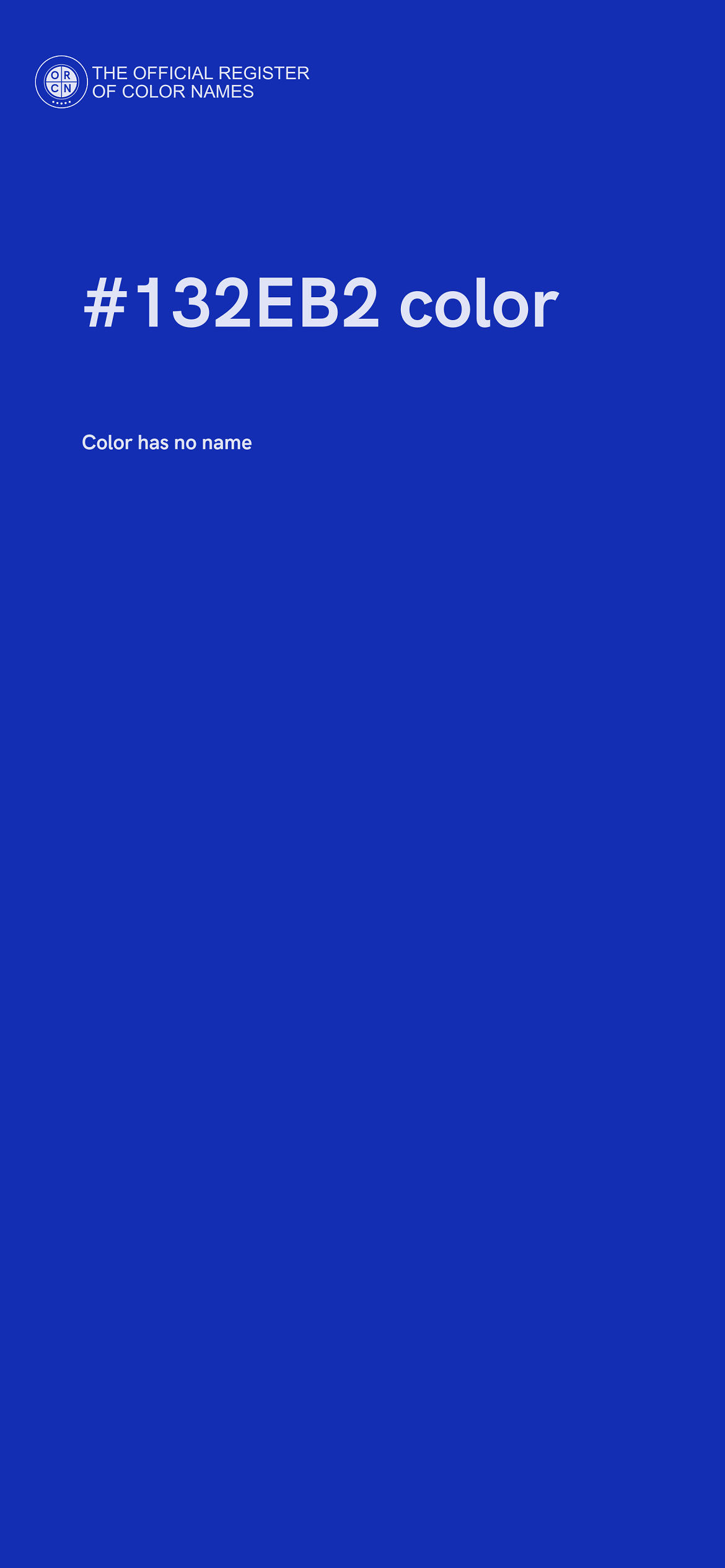 The digital color HEX #132EB2 belongs to the Blue Color Family featuring High Saturation (Saturation Family) and Neutral (Brightness Family).