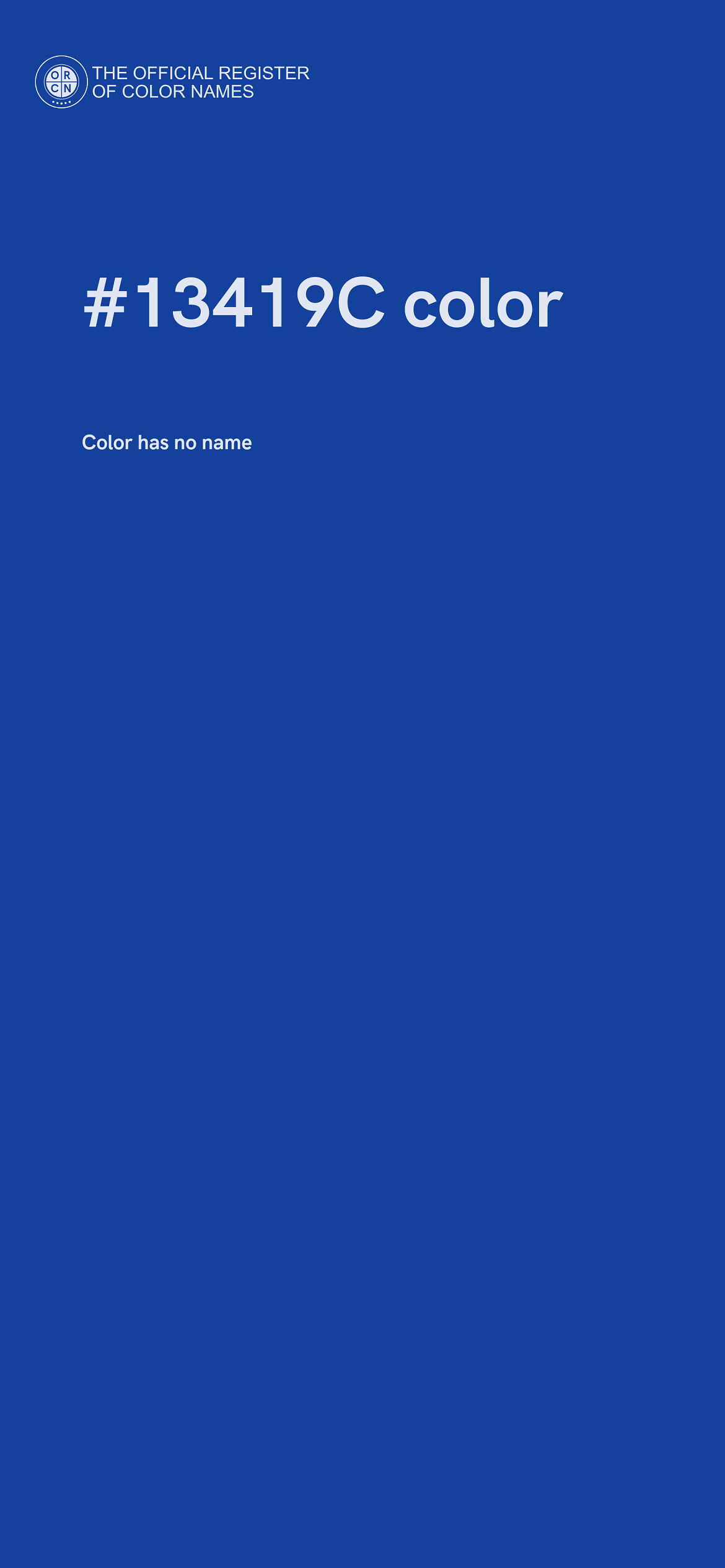 The digital color HEX #13419C belongs to the Azure Color Family featuring High Saturation (Saturation Family) and Neutral (Brightness Family).