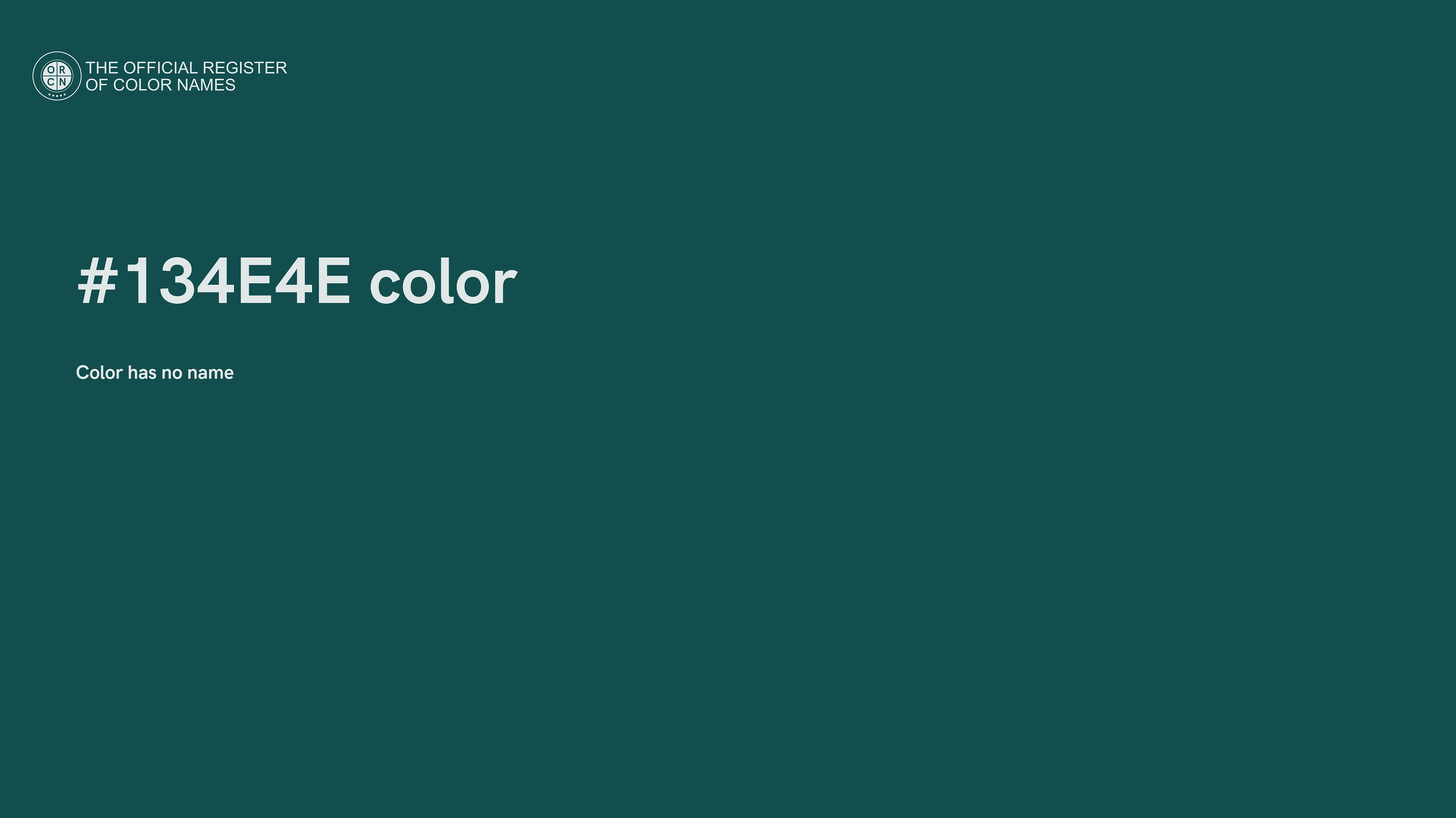 The digital color HEX #134E4E belongs to the Cyan Color Family featuring High Saturation (Saturation Family) and Dark (Brightness Family).
