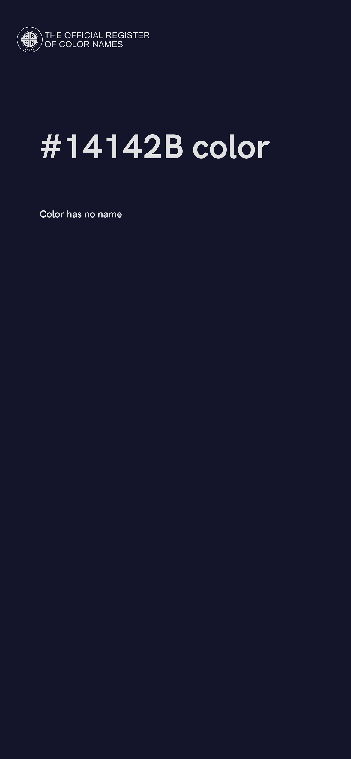 The digital color HEX #14142B belongs to the Blue Color Family featuring Mild Saturation (Saturation Family) and Dark (Brightness Family).