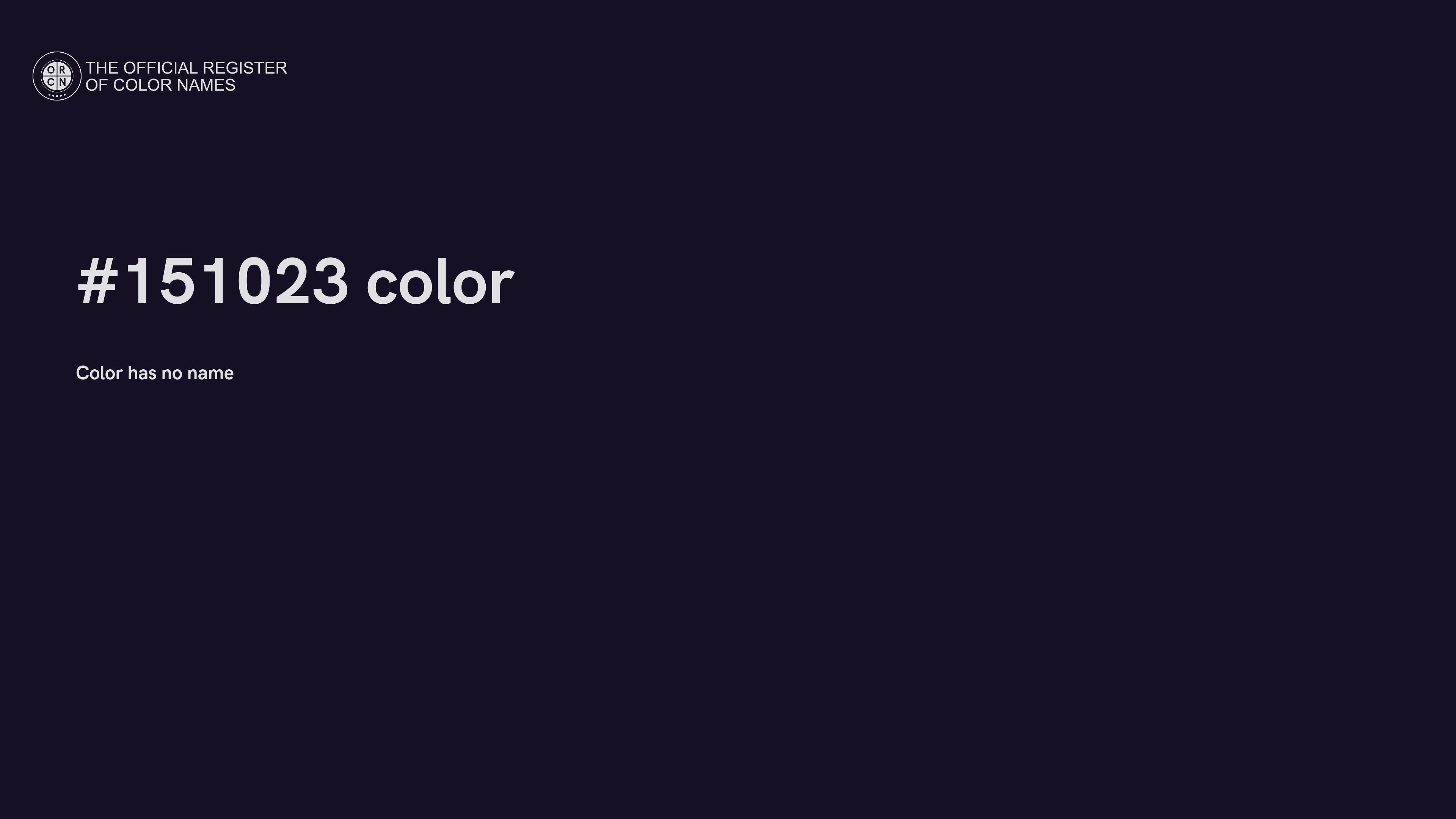 The digital color HEX #151023 belongs to the Violet Color Family featuring Mild Saturation (Saturation Family) and Dark (Brightness Family).