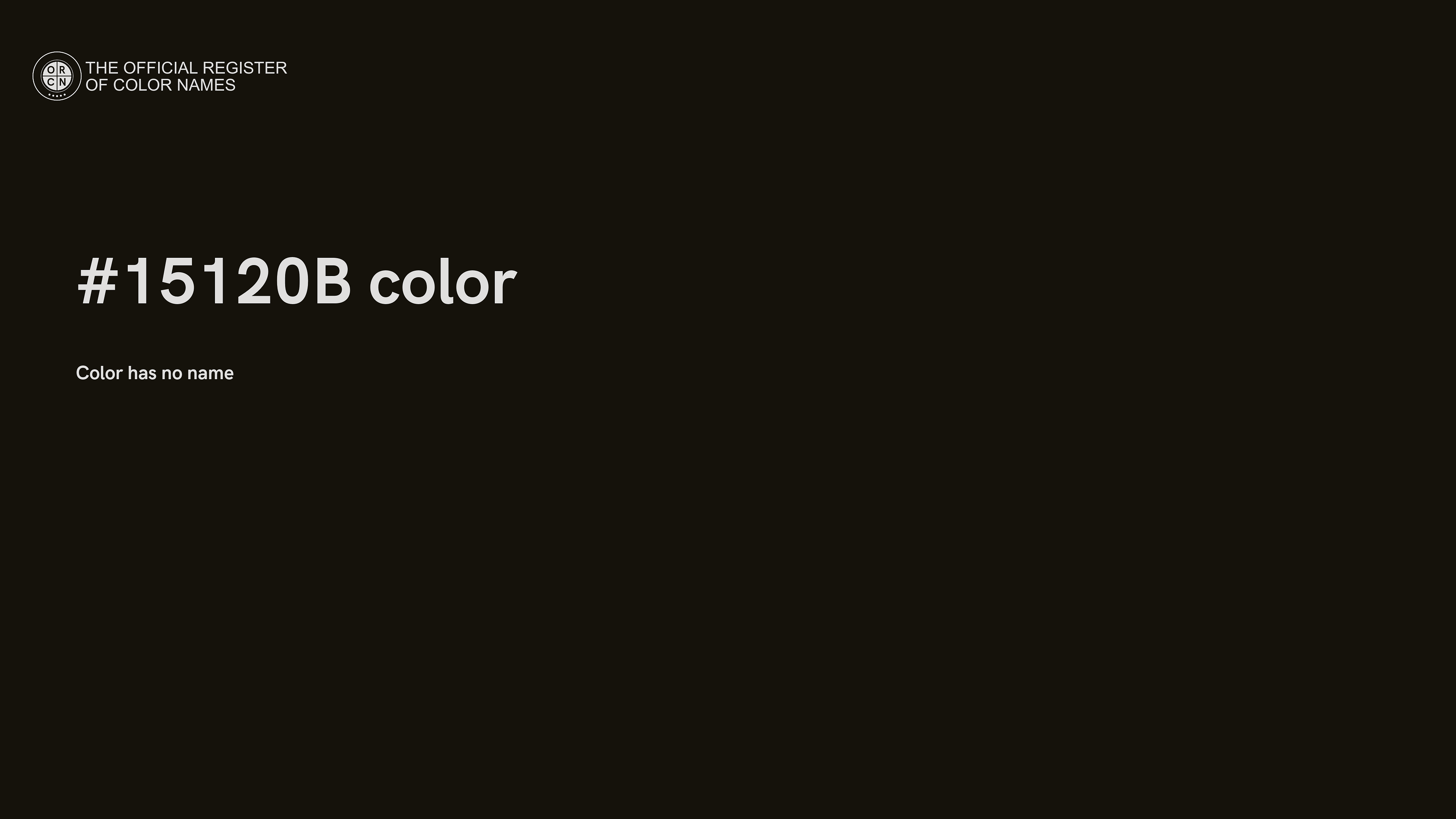 The digital color HEX #15120B belongs to the Orange Color Family featuring Mild Saturation (Saturation Family) and Very Dark (Brightness Family).