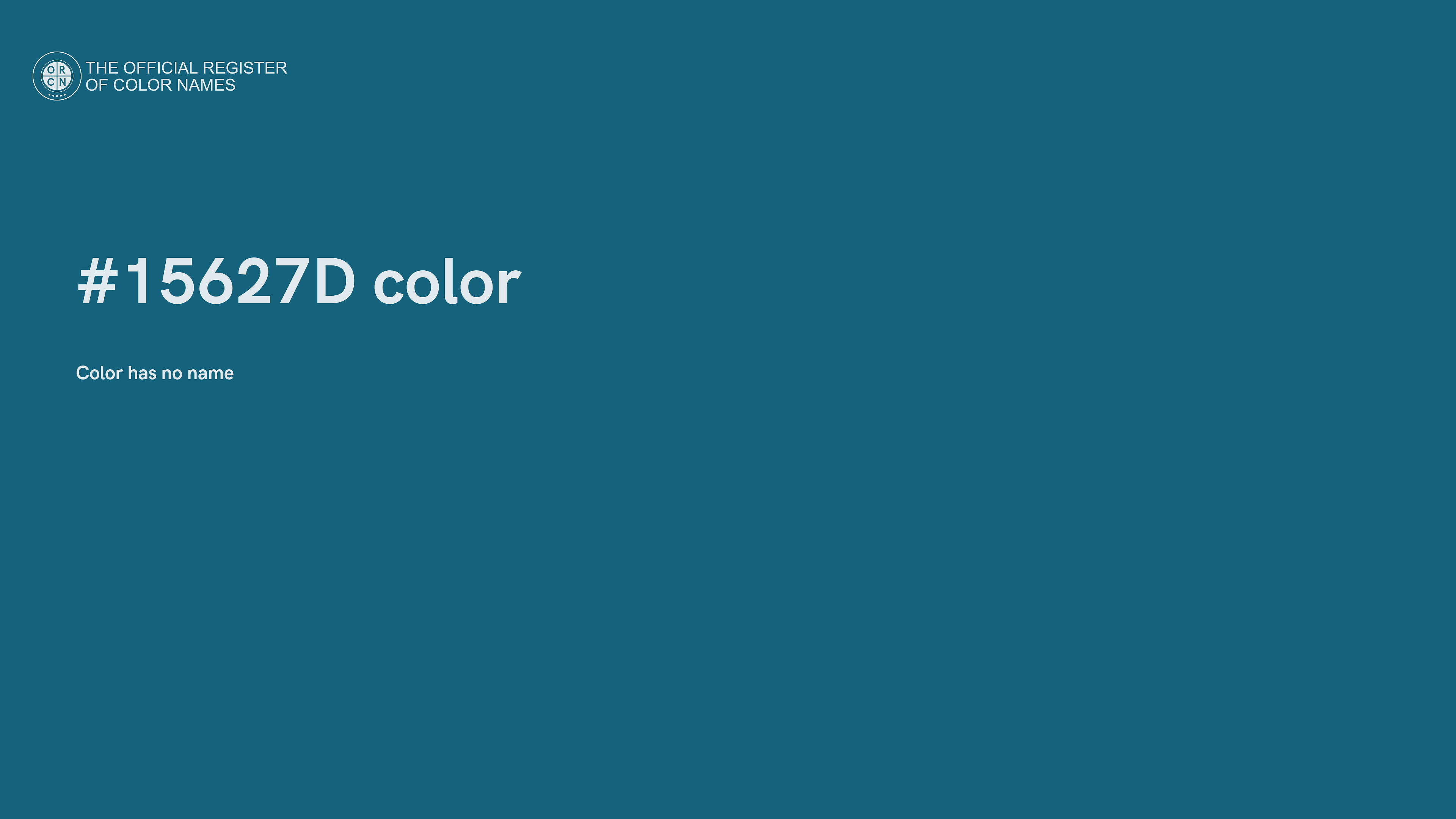 HEX code #15627D represent the color in hexadecimal format by combining three values – the amounts of Red, Green and Blue (RGB). Its RGB composition is 21, 98, 125 ( rgb(21, 98, 125) ), which breaks down into 8.2% of Red, 38.4% Green and 49% Blue.