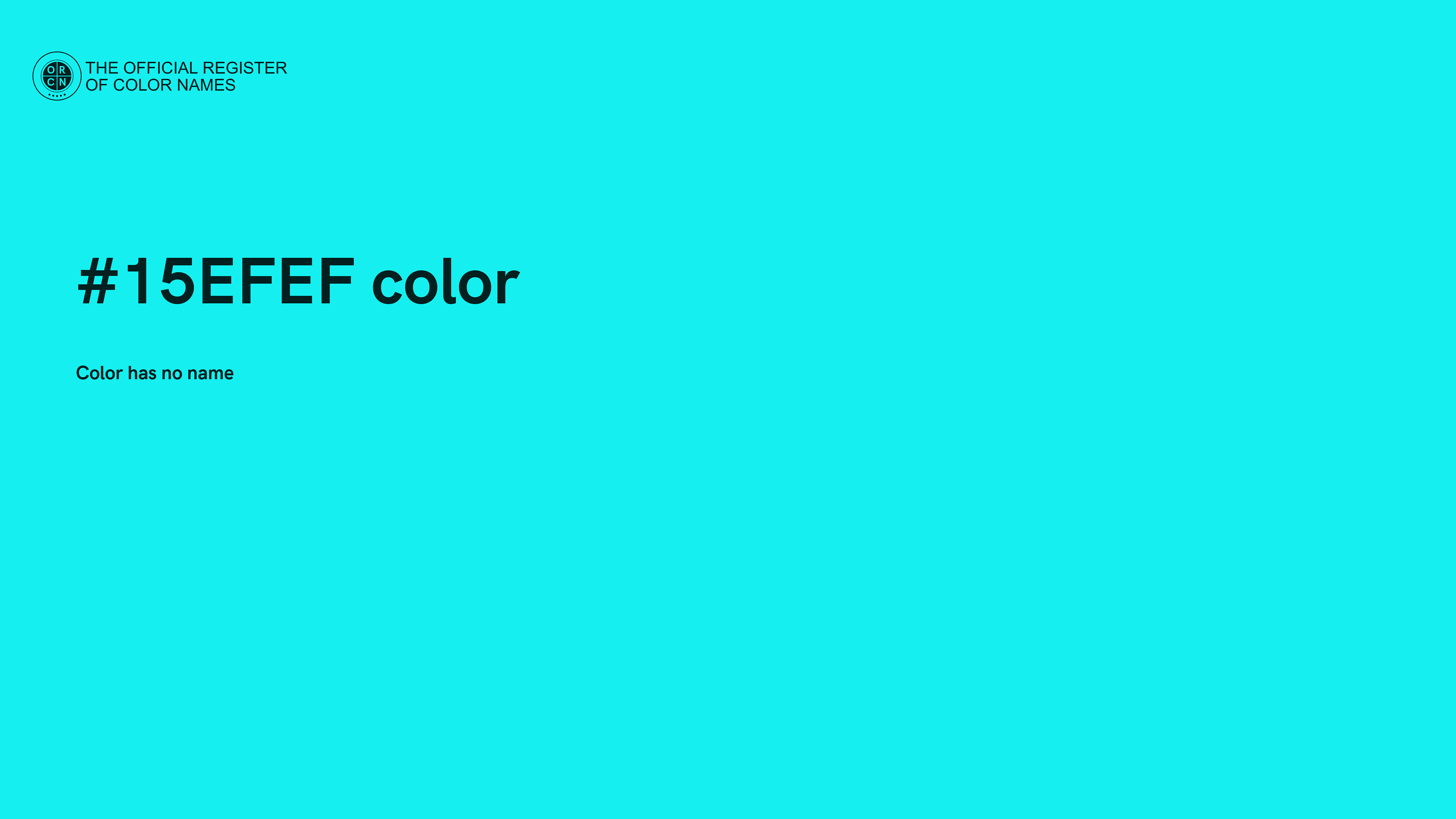 The digital color HEX #15EFEF belongs to the Cyan Color Family featuring Full Saturation (Saturation Family) and Light (Brightness Family).