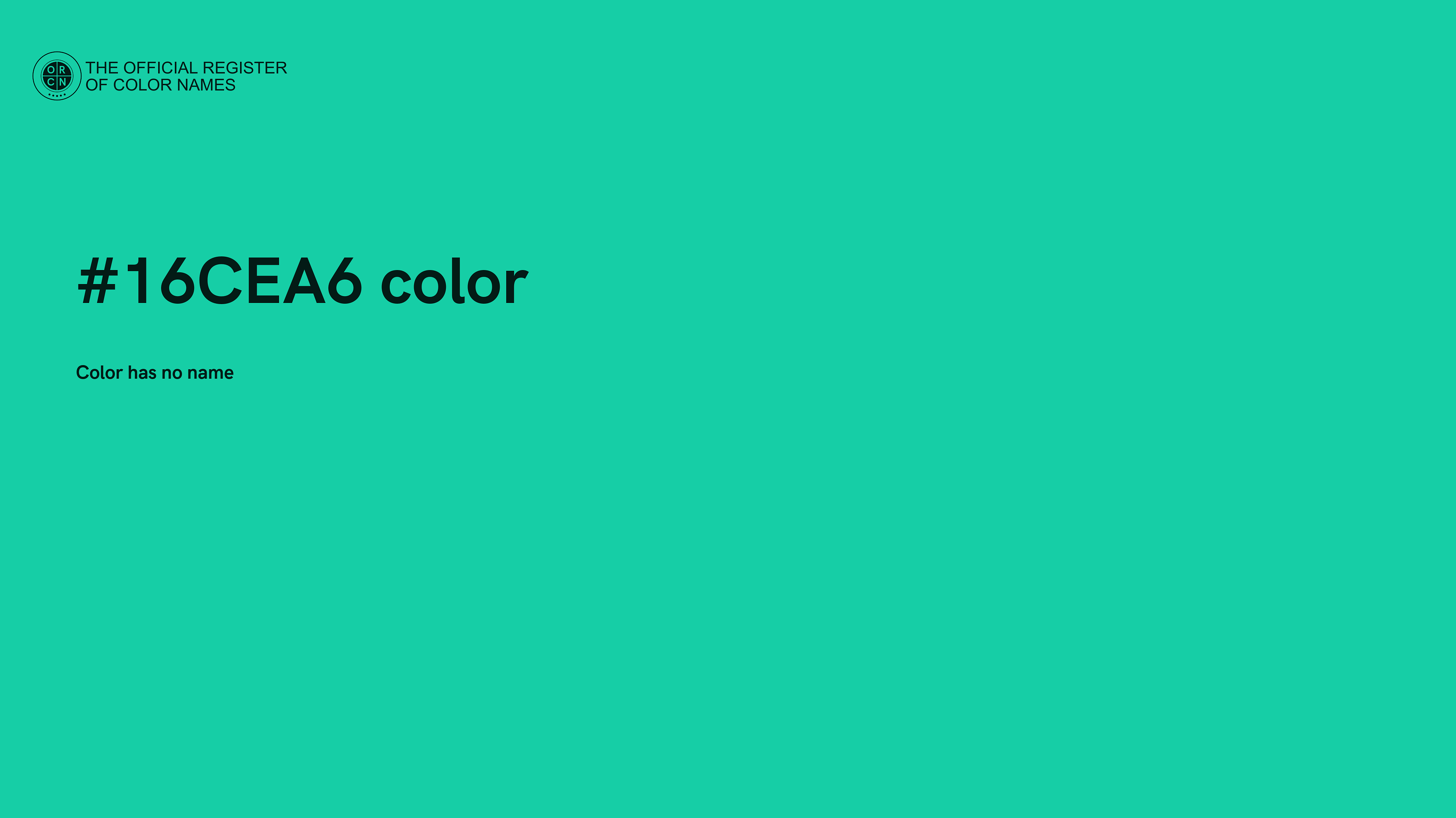 The digital color HEX #16CEA6 belongs to the Cyan Color Family featuring High Saturation (Saturation Family) and Light (Brightness Family).