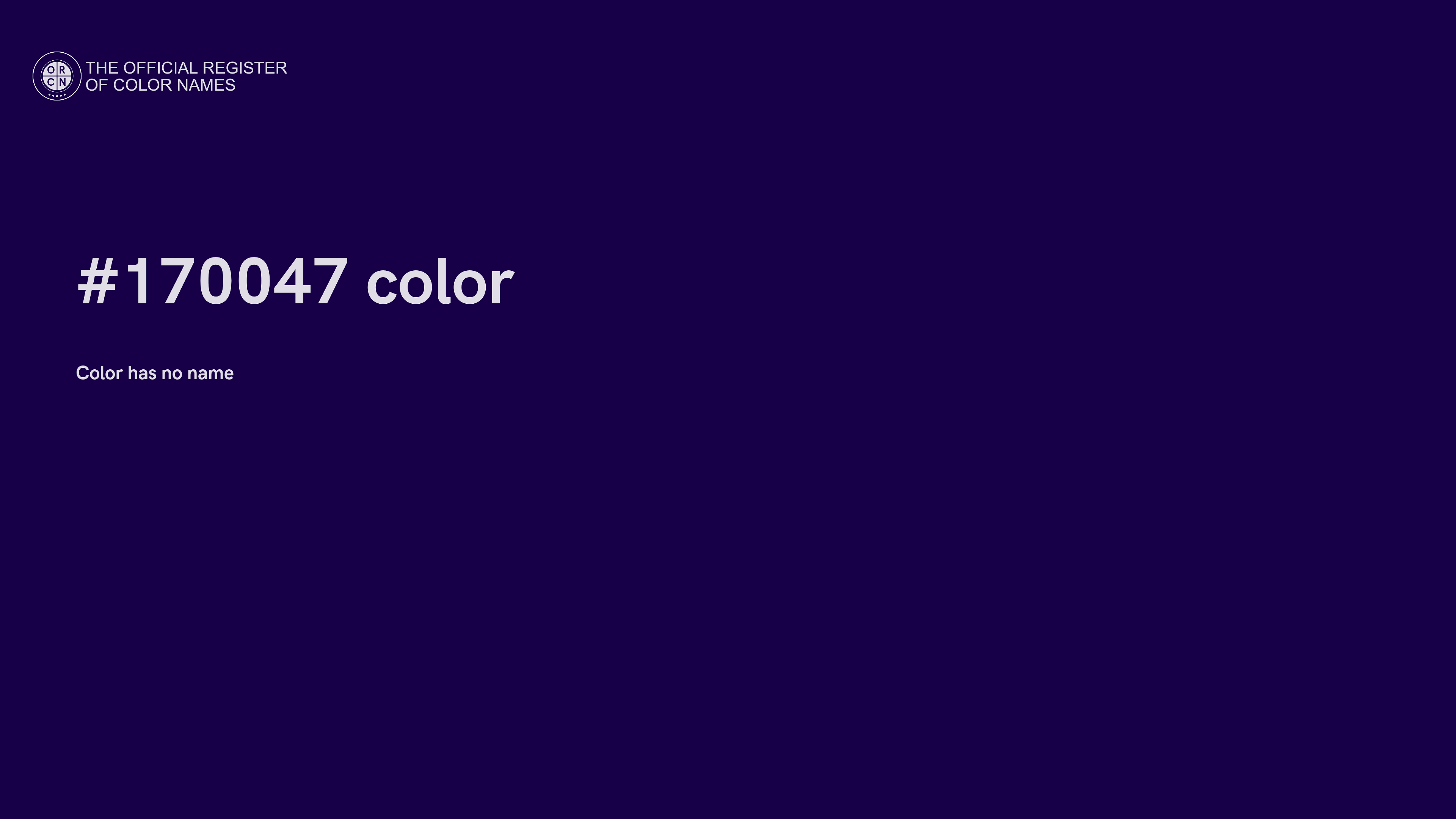 For printing in non digital world, #170047 is represented in CMYK as 19 Cyan, 28 Magenta, 0 Yellow, and 72 Black (Key) (C:19 M:28 Y:0 K:72).