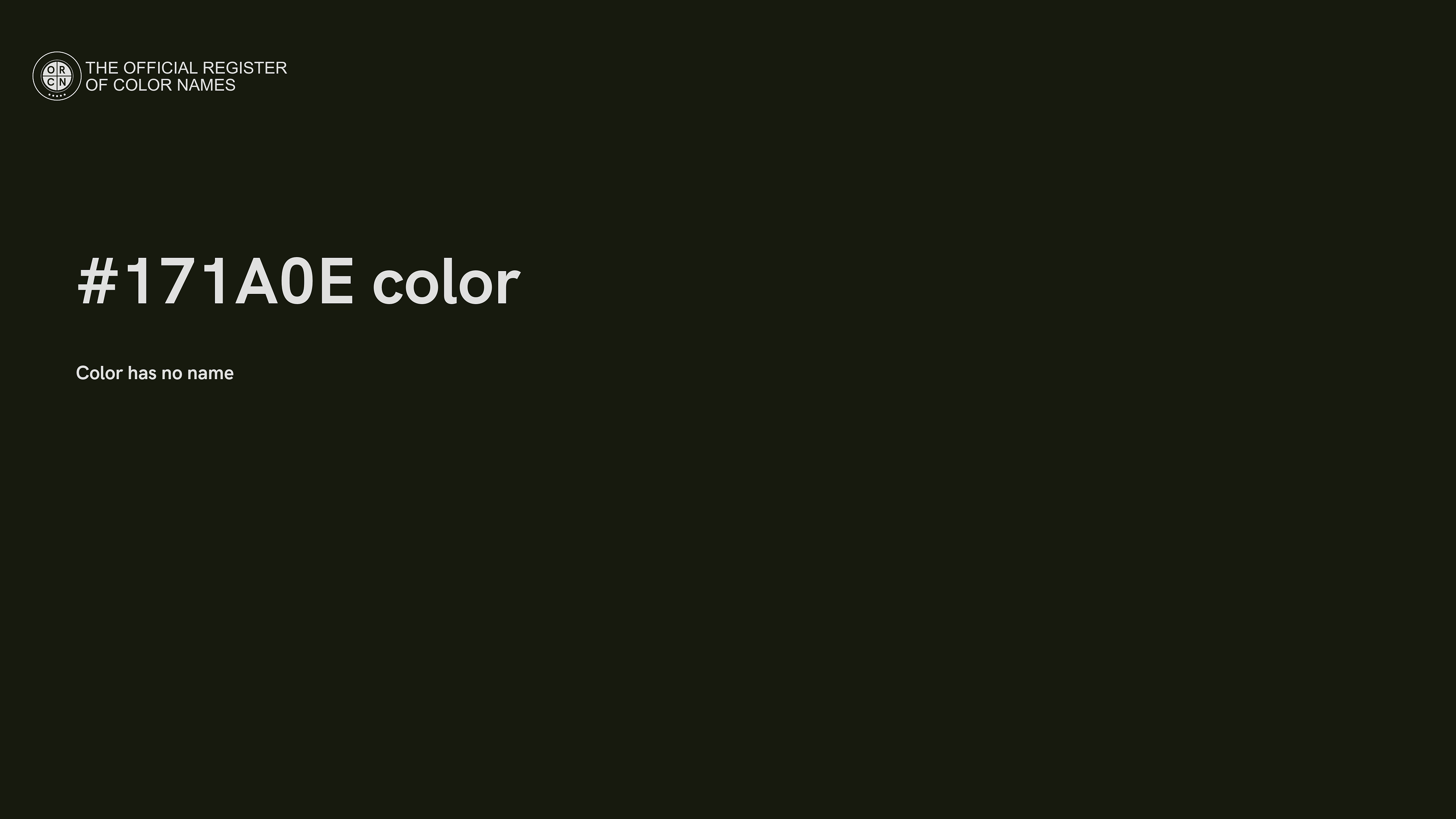 The digital color HEX #171A0E belongs to the Chartreuse Color Family featuring Mild Saturation (Saturation Family) and Very Dark (Brightness Family).