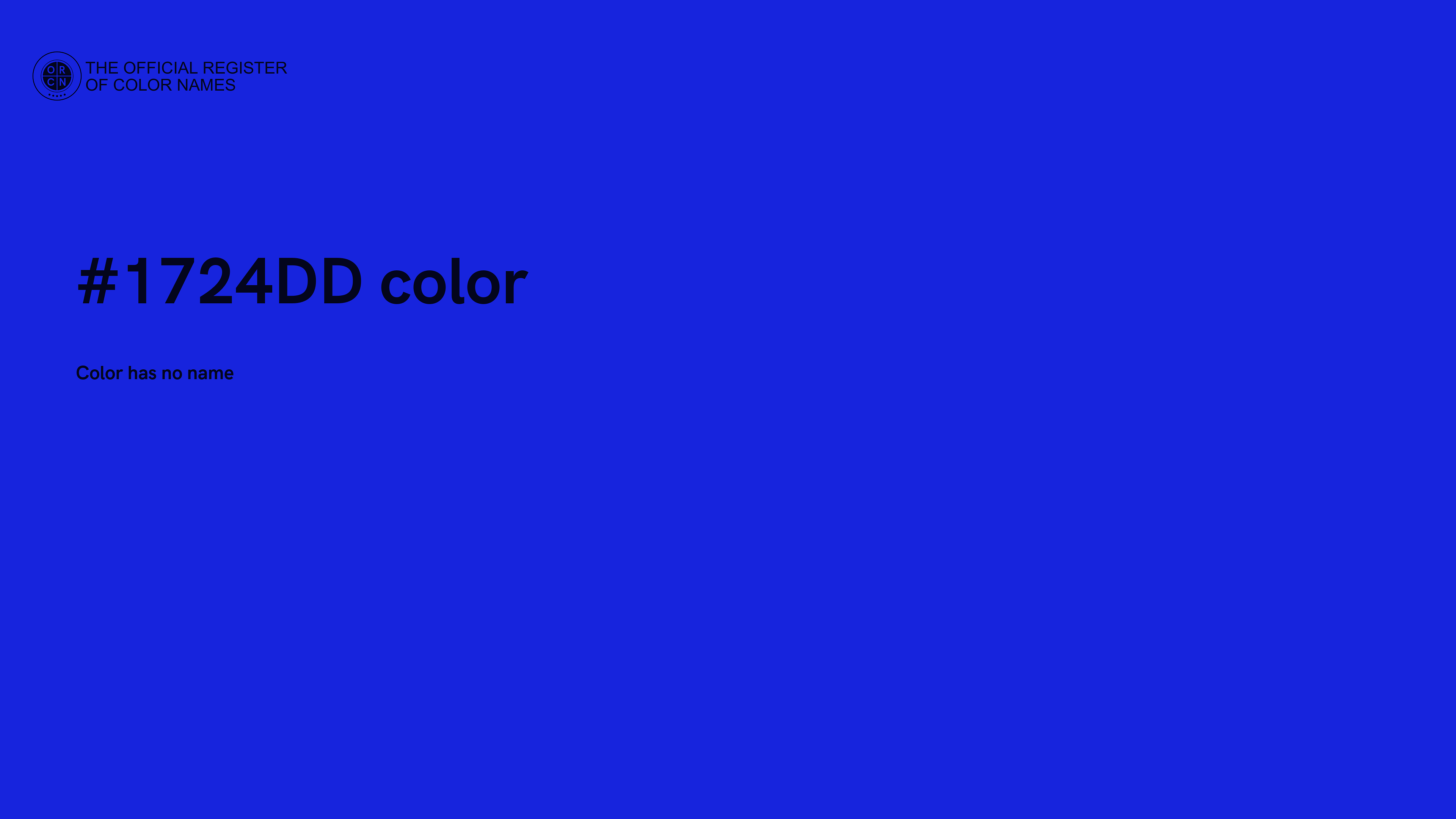 The digital color HEX #1724DD belongs to the Blue Color Family featuring High Saturation (Saturation Family) and Light (Brightness Family).