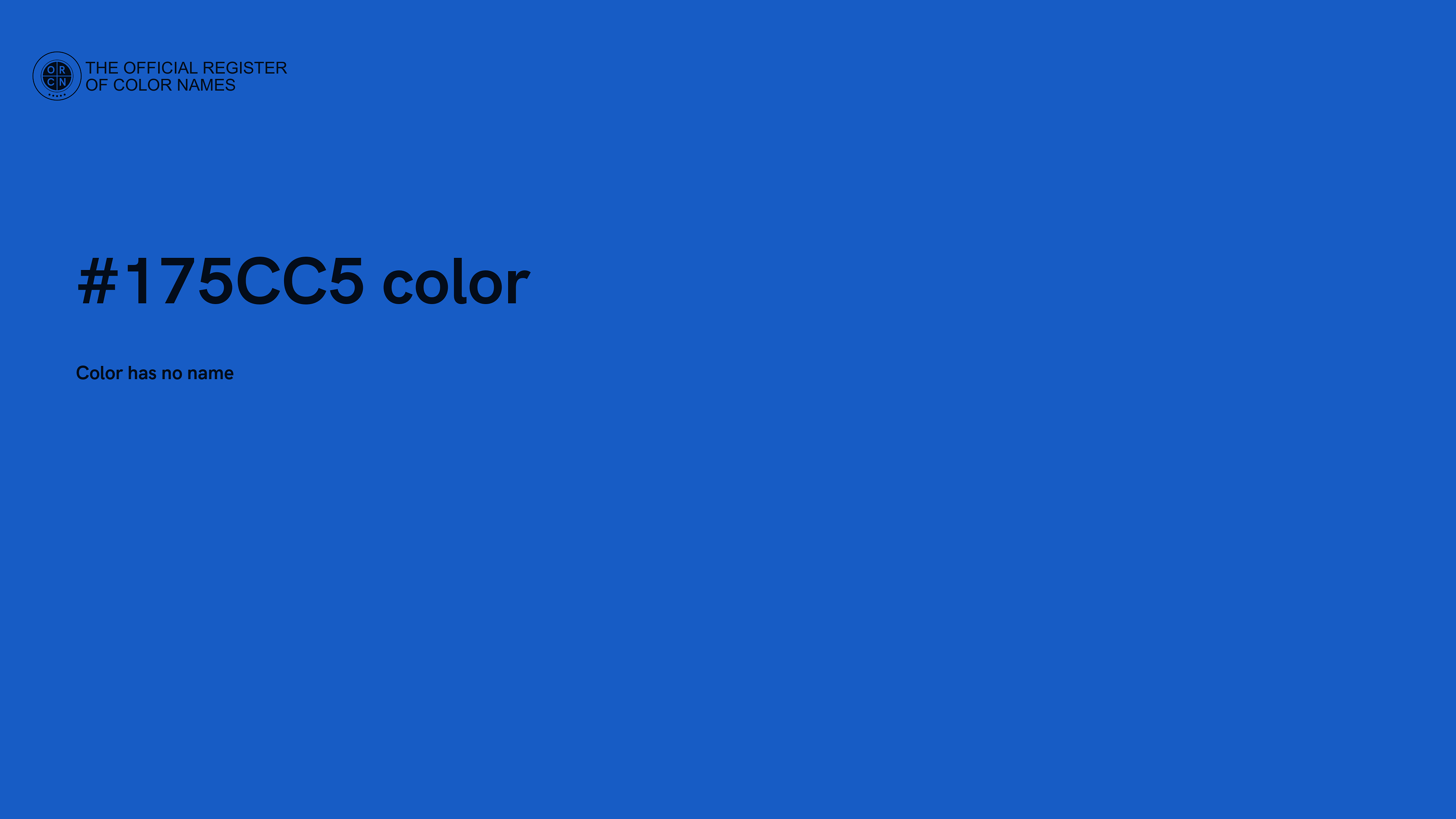 The digital color HEX #175CC5 belongs to the Azure Color Family featuring High Saturation (Saturation Family) and Light (Brightness Family).