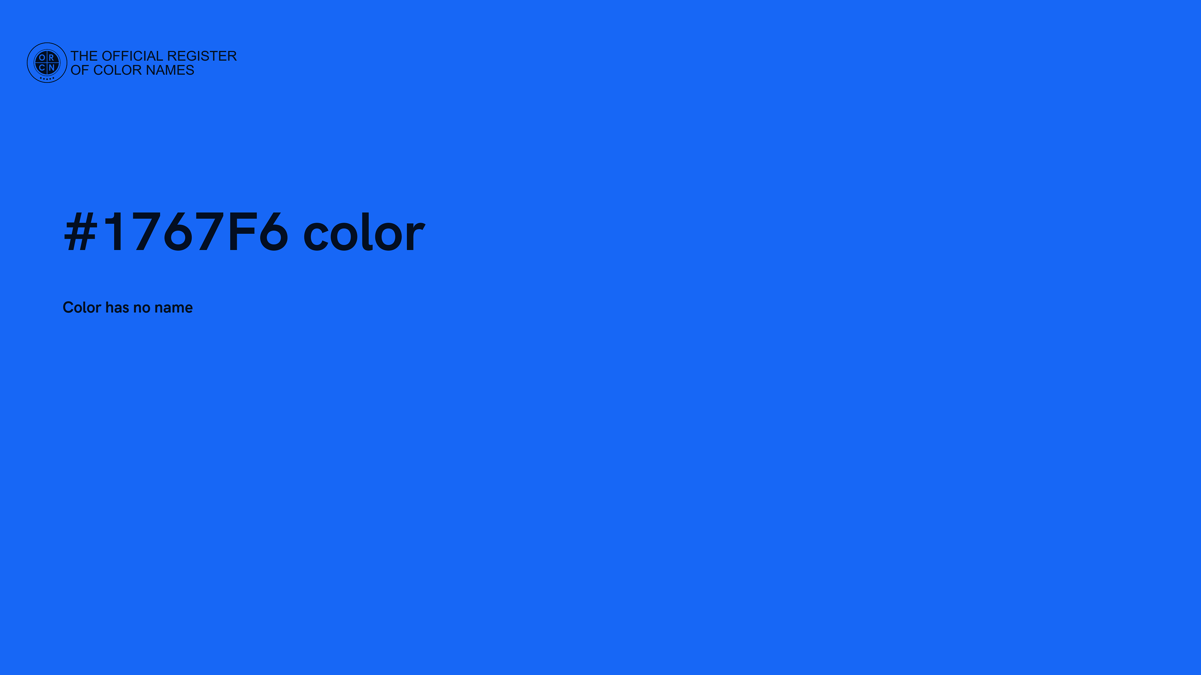 The digital color HEX #1767F6 belongs to the Azure Color Family featuring Full Saturation (Saturation Family) and Light (Brightness Family).