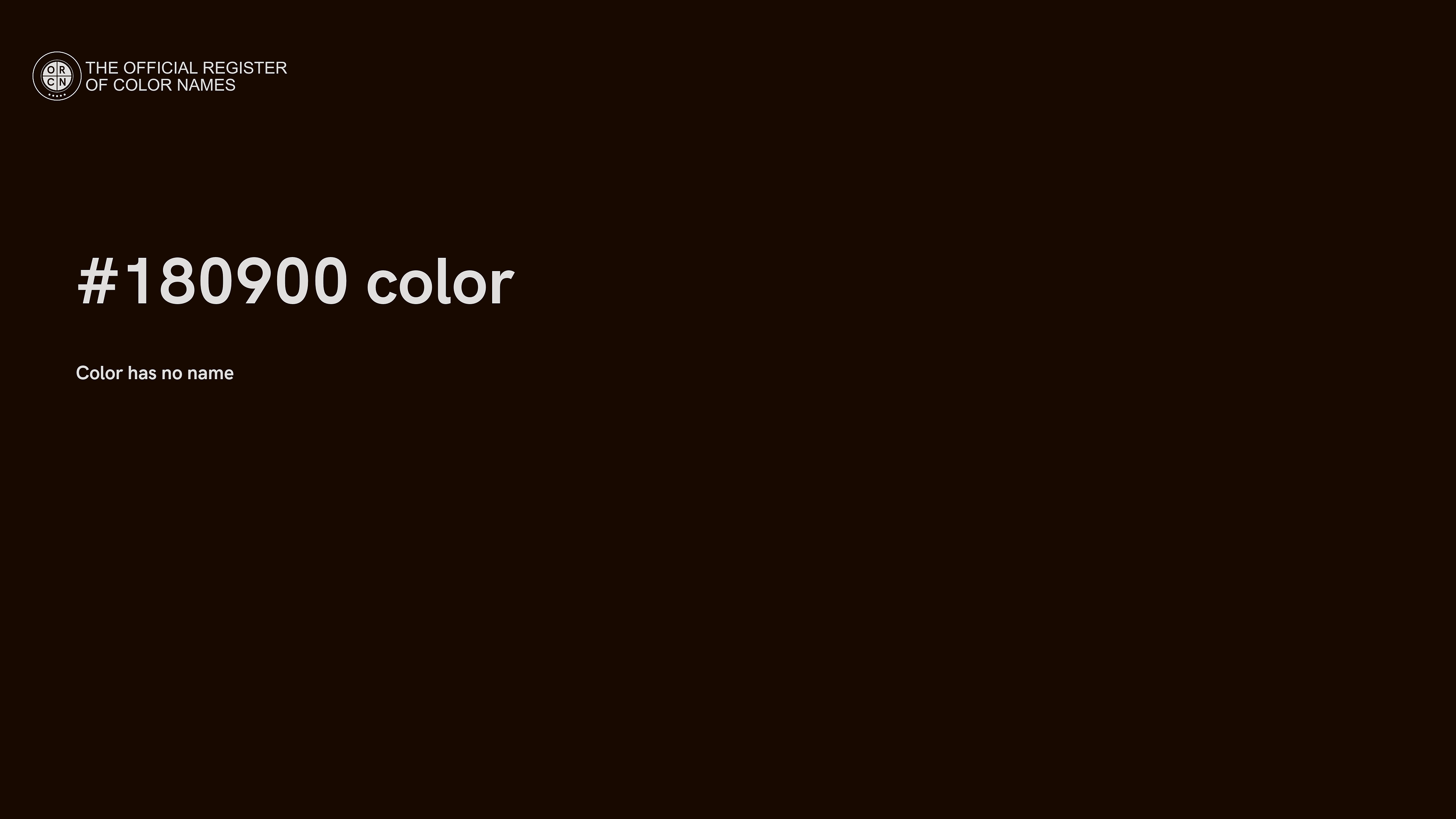 The digital color HEX #180900 belongs to the Orange Color Family featuring Full Saturation (Saturation Family) and Very Dark (Brightness Family).