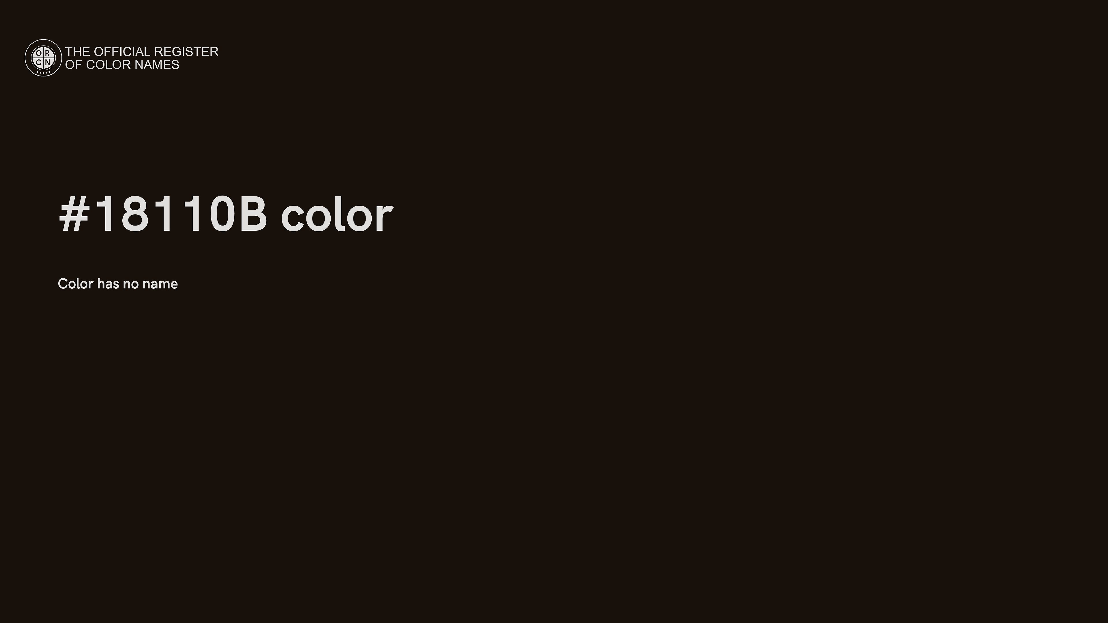 The digital color HEX #18110B belongs to the Orange Color Family featuring Mild Saturation (Saturation Family) and Very Dark (Brightness Family).
