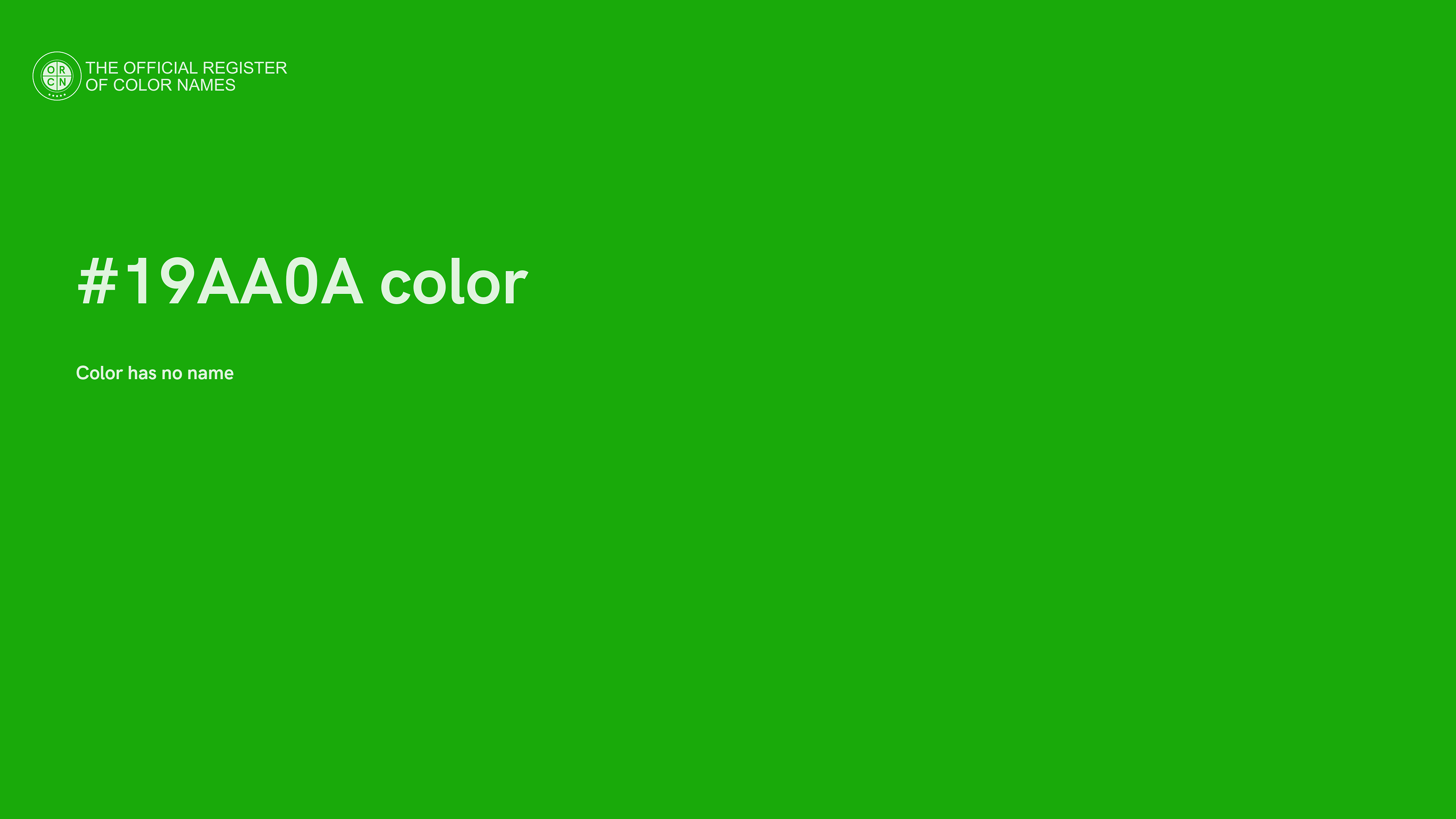 The digital color HEX #19AA0A belongs to the Green Color Family featuring Full Saturation (Saturation Family) and Neutral (Brightness Family).