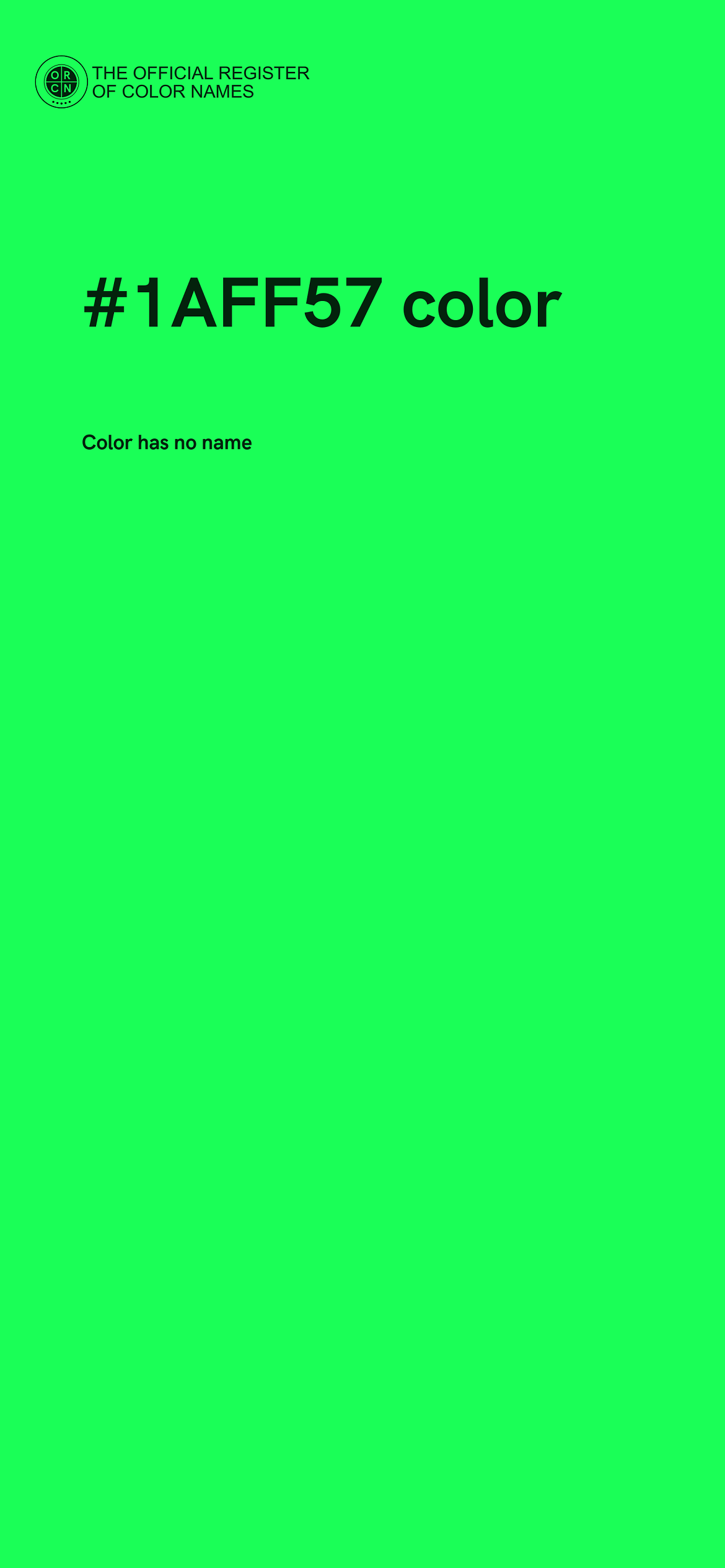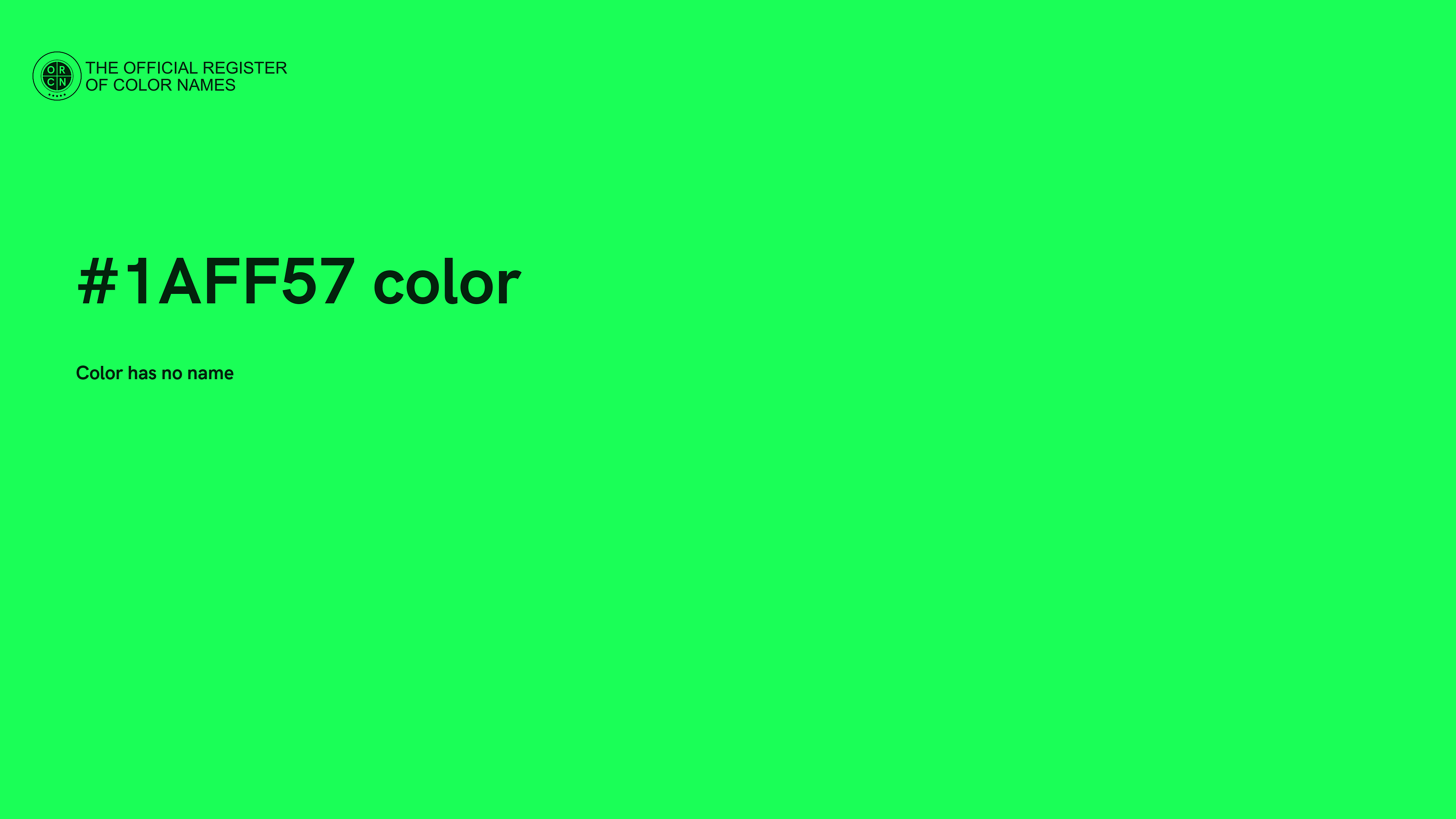 The digital color HEX #1AFF57 belongs to the Spring Green Color Family featuring Full Saturation (Saturation Family) and Light (Brightness Family).