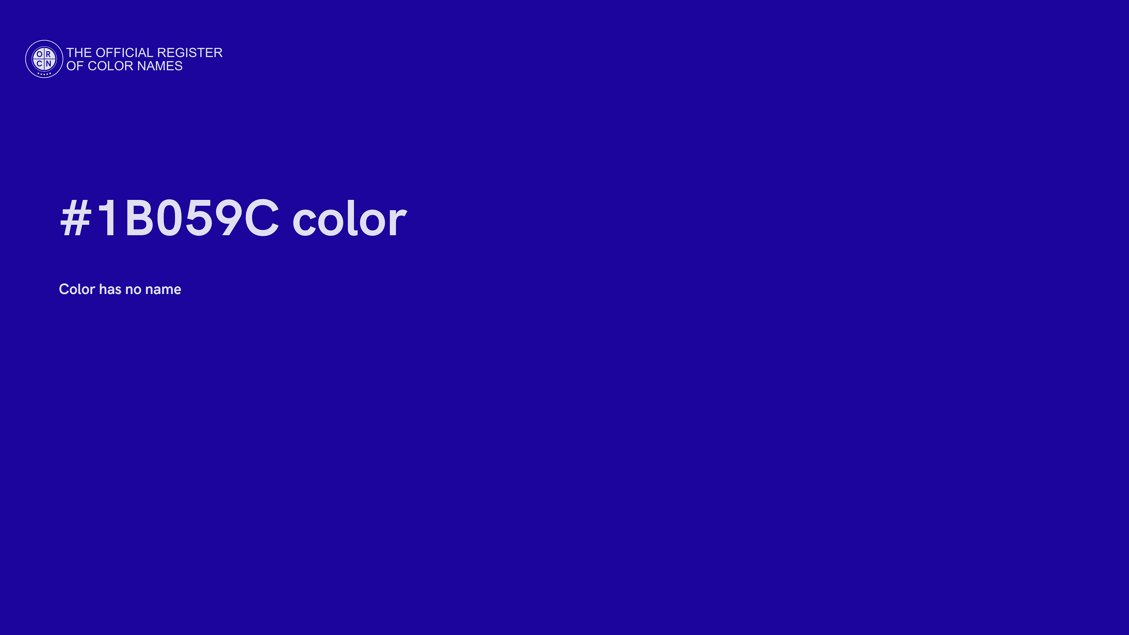 The digital color HEX #1B059C belongs to the Blue Color Family featuring Full Saturation (Saturation Family) and Neutral (Brightness Family).