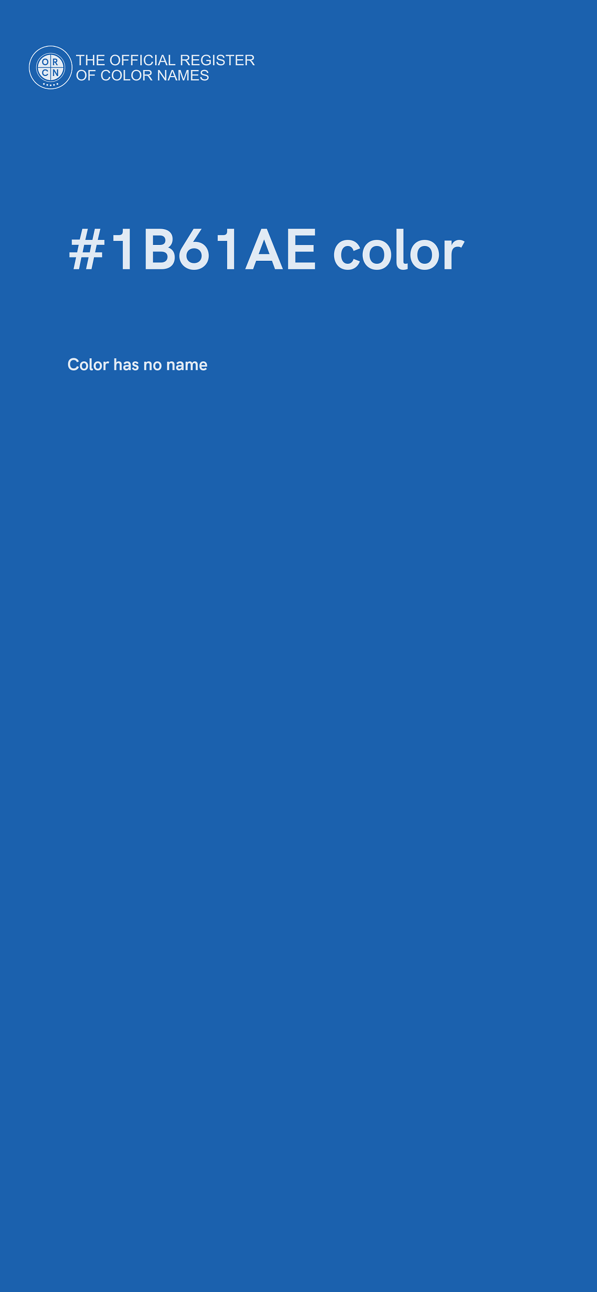 The digital color HEX #1B61AE belongs to the Azure Color Family featuring High Saturation (Saturation Family) and Neutral (Brightness Family).