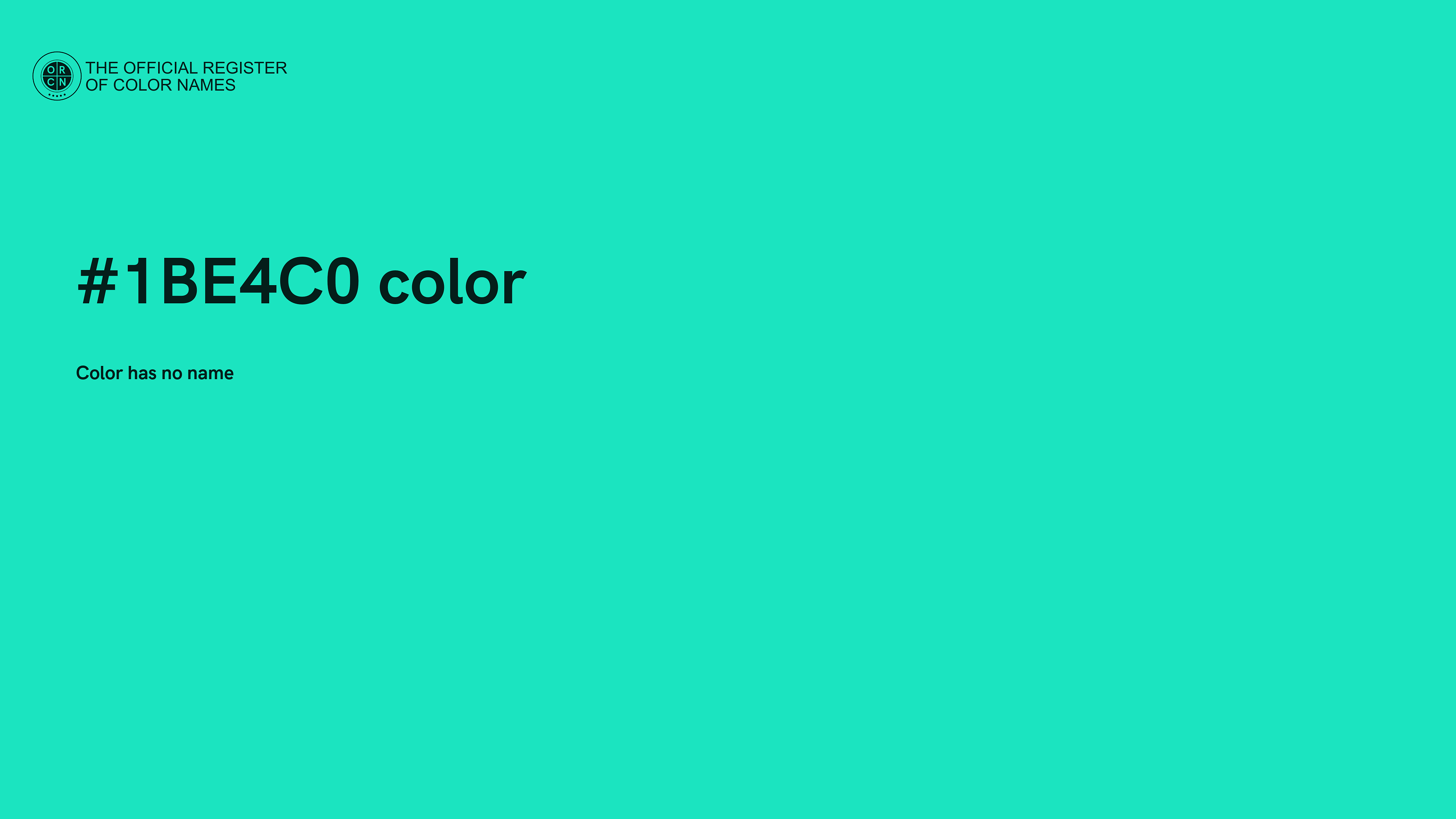 The digital color HEX #1BE4C0 belongs to the Cyan Color Family featuring High Saturation (Saturation Family) and Light (Brightness Family).