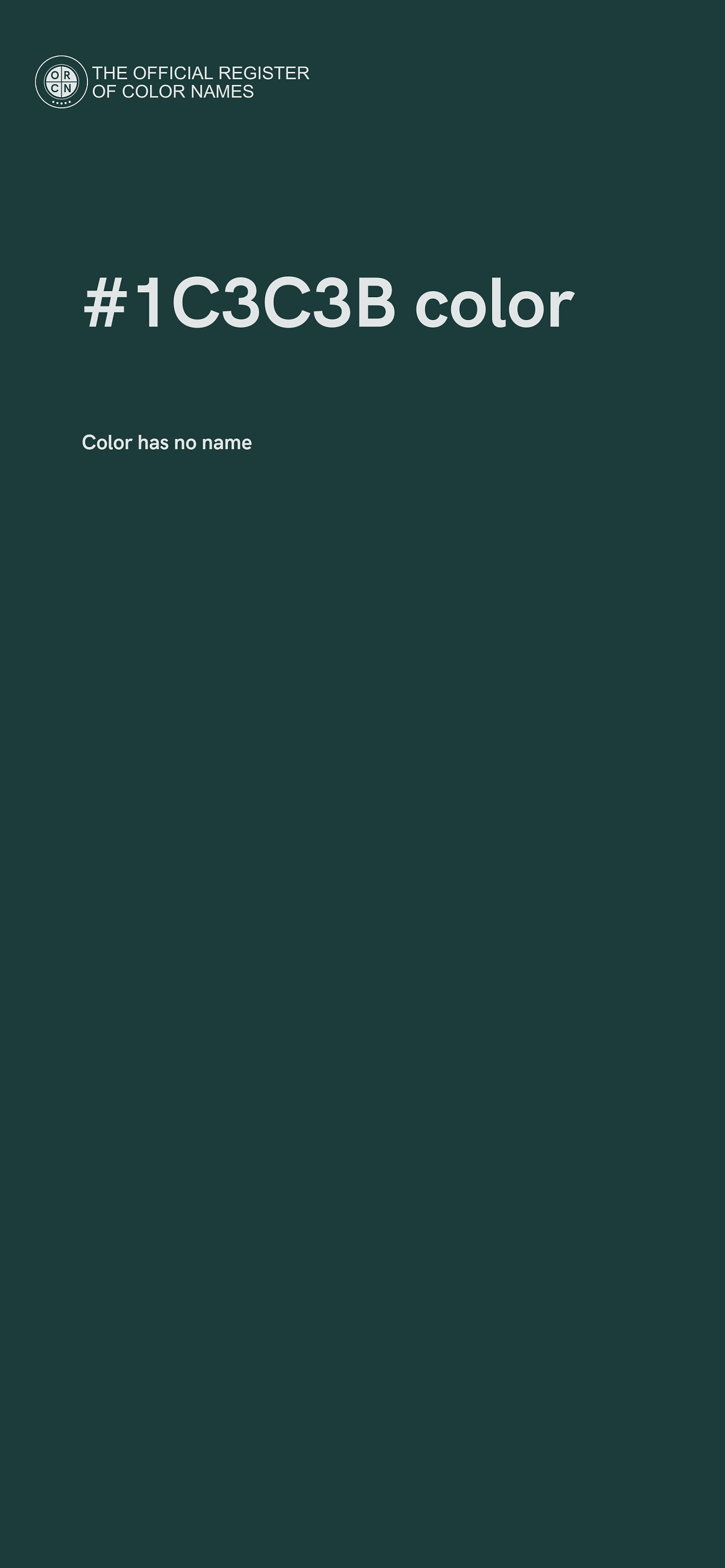 The digital color HEX #1C3C3B belongs to the Cyan Color Family featuring Mild Saturation (Saturation Family) and Dark (Brightness Family).