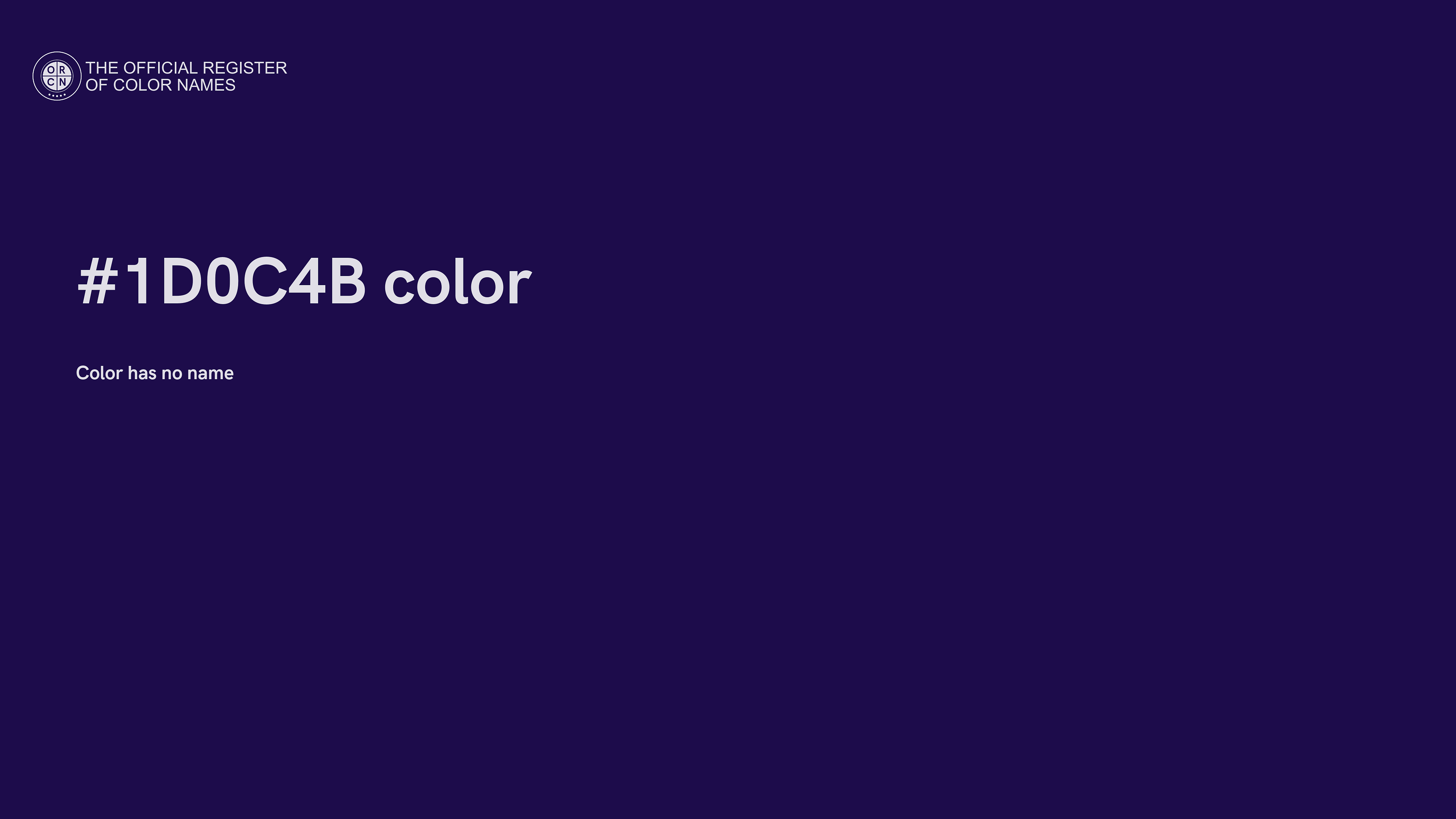 For printing in non digital world, #1D0C4B is represented in CMYK as 18 Cyan, 25 Magenta, 0 Yellow, and 71 Black (Key) (C:18 M:25 Y:0 K:71).