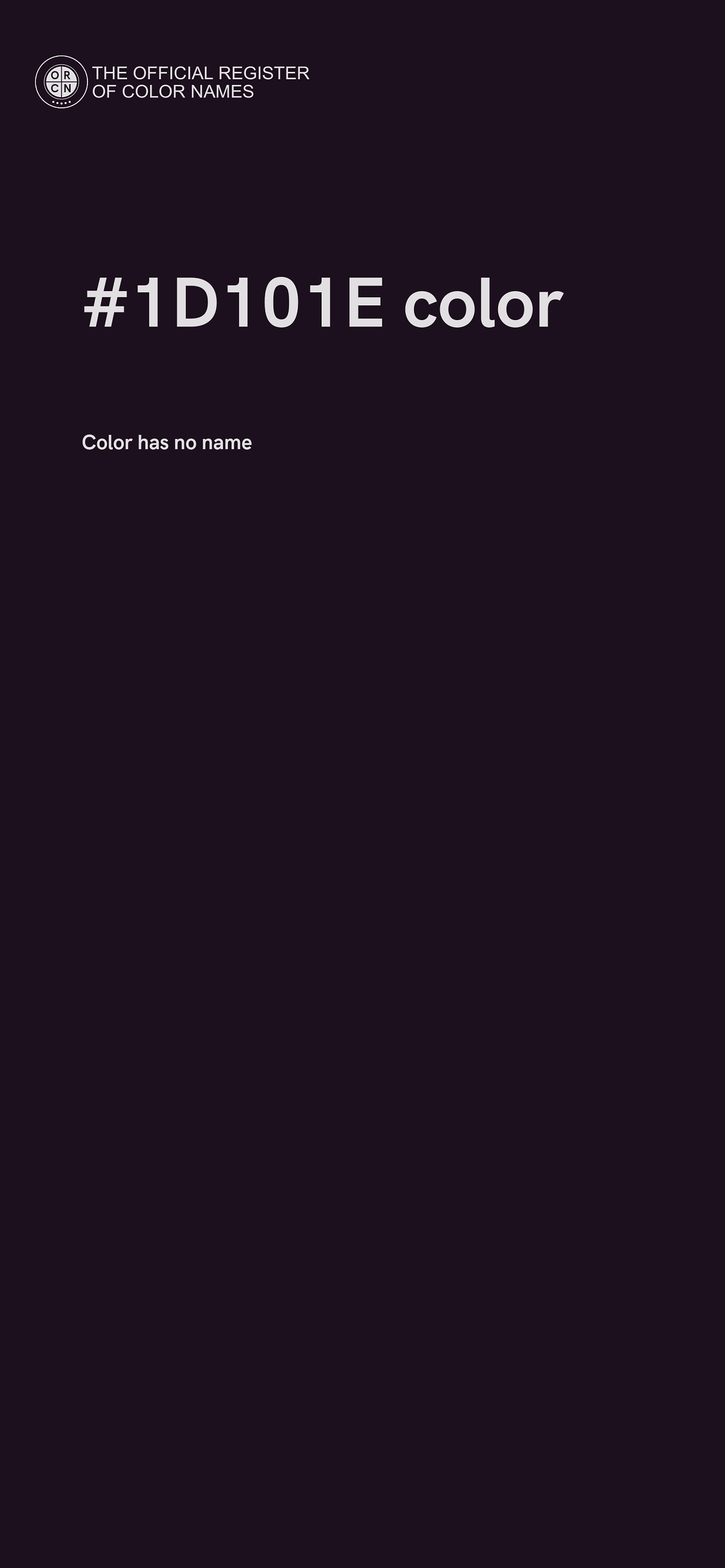 The digital color HEX #1D101E belongs to the Magenta Color Family featuring Mild Saturation (Saturation Family) and Very Dark (Brightness Family).