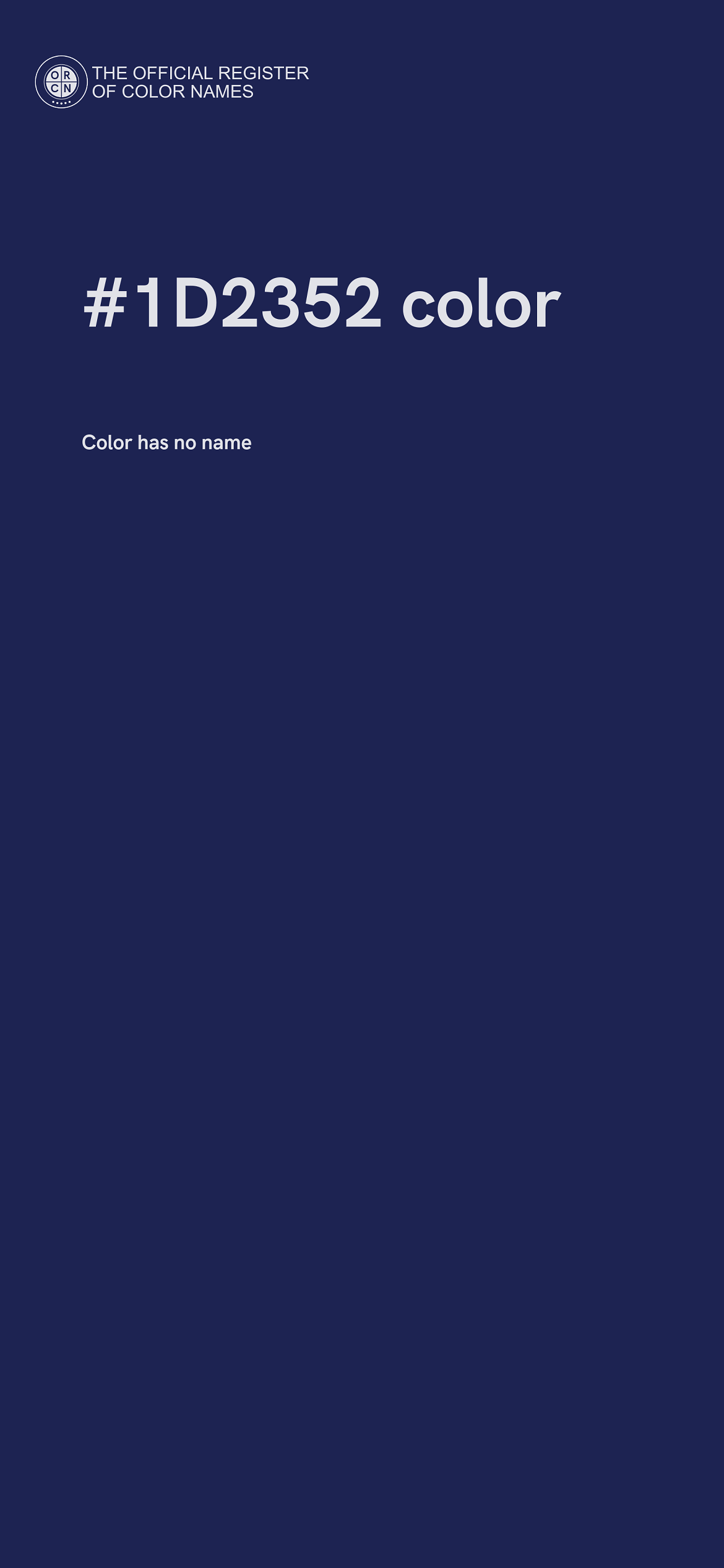 The digital color HEX #1D2352 belongs to the Blue Color Family featuring Moderate Saturation (Saturation Family) and Dark (Brightness Family).