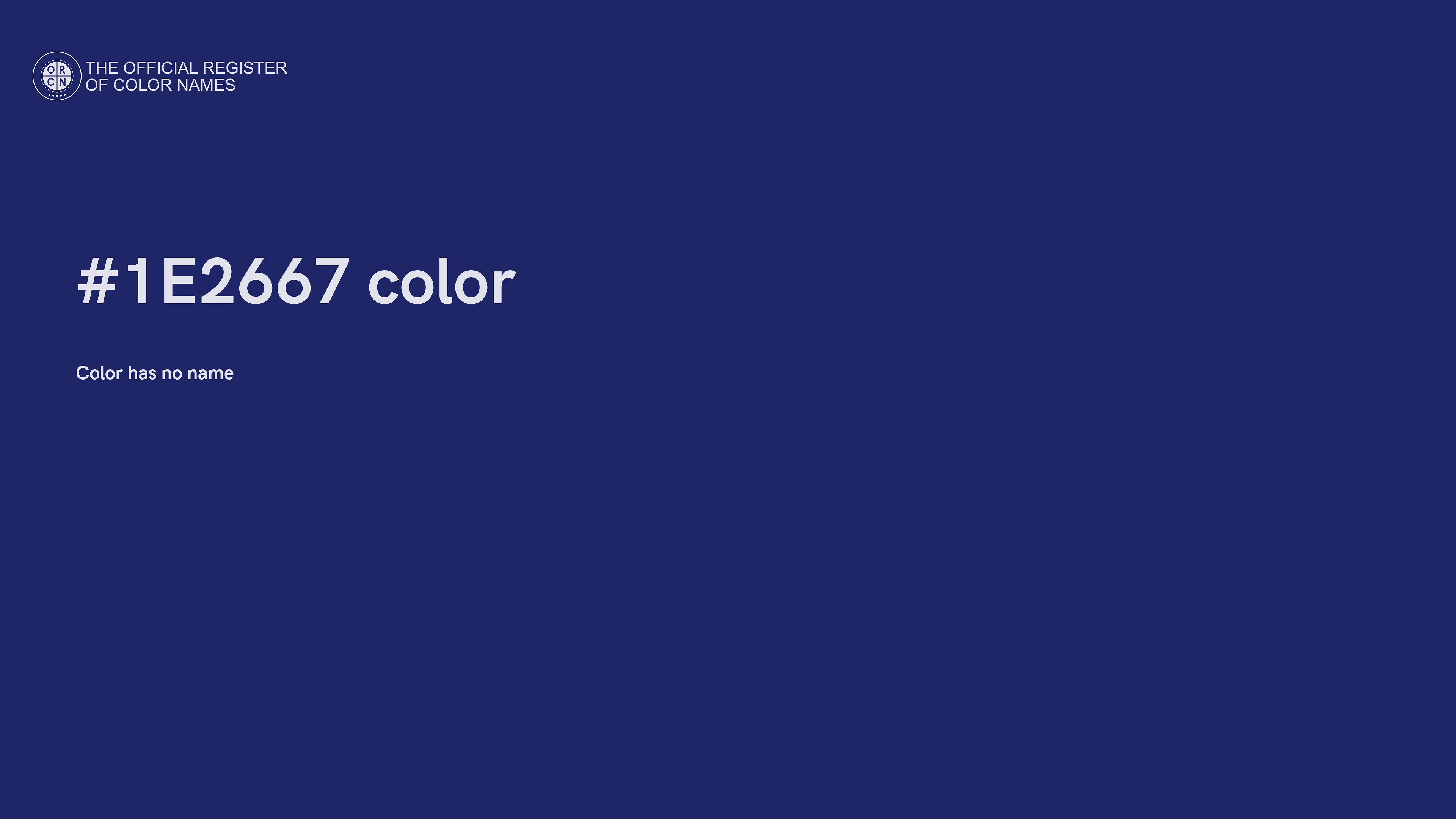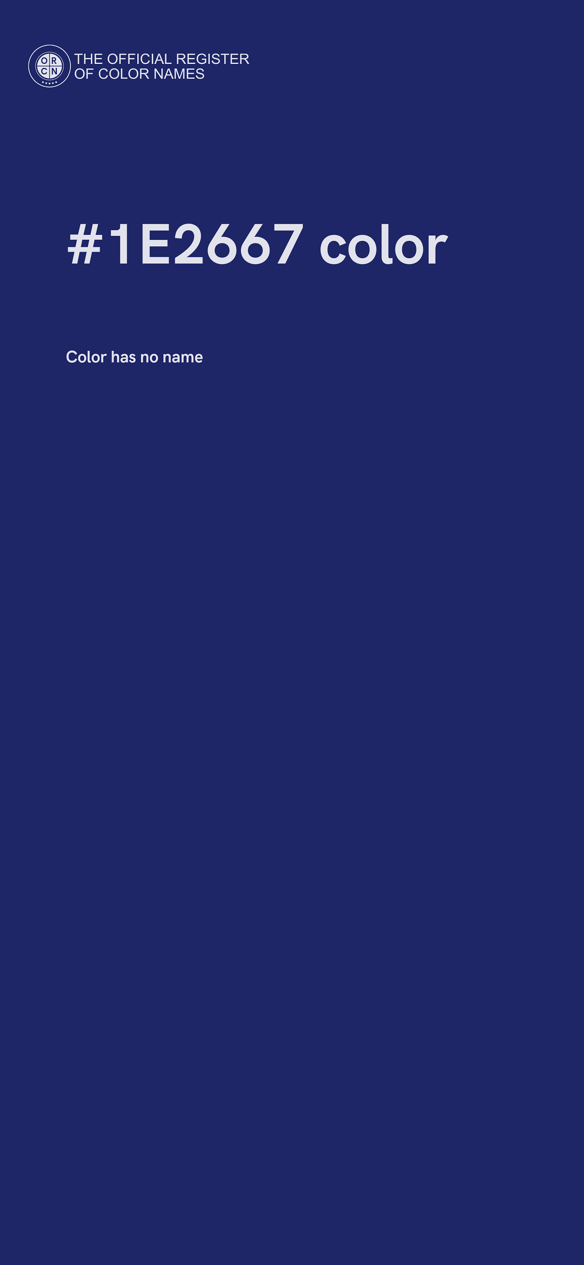 The digital color HEX #1E2667 belongs to the Blue Color Family featuring Moderate Saturation (Saturation Family) and Neutral (Brightness Family).