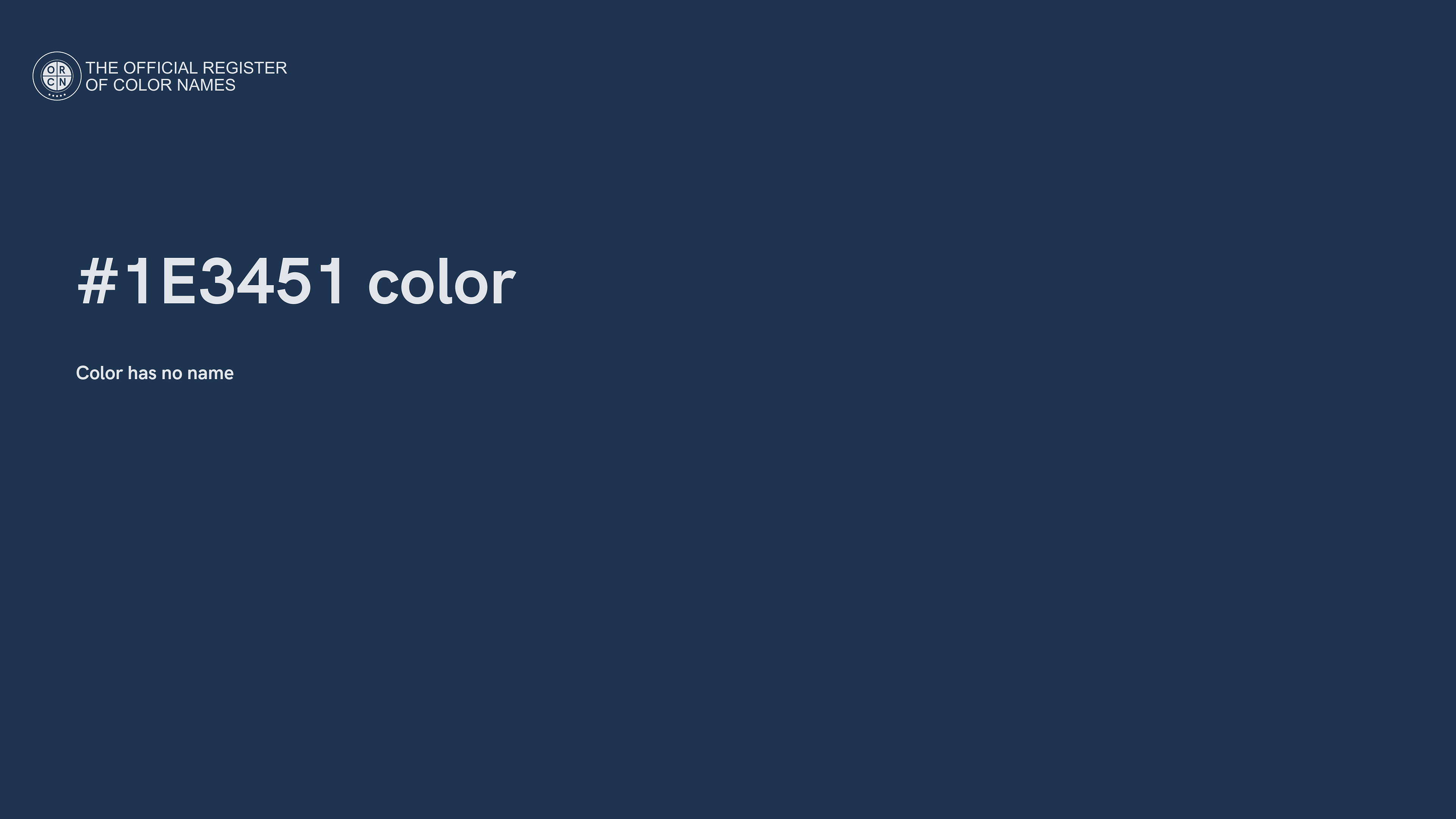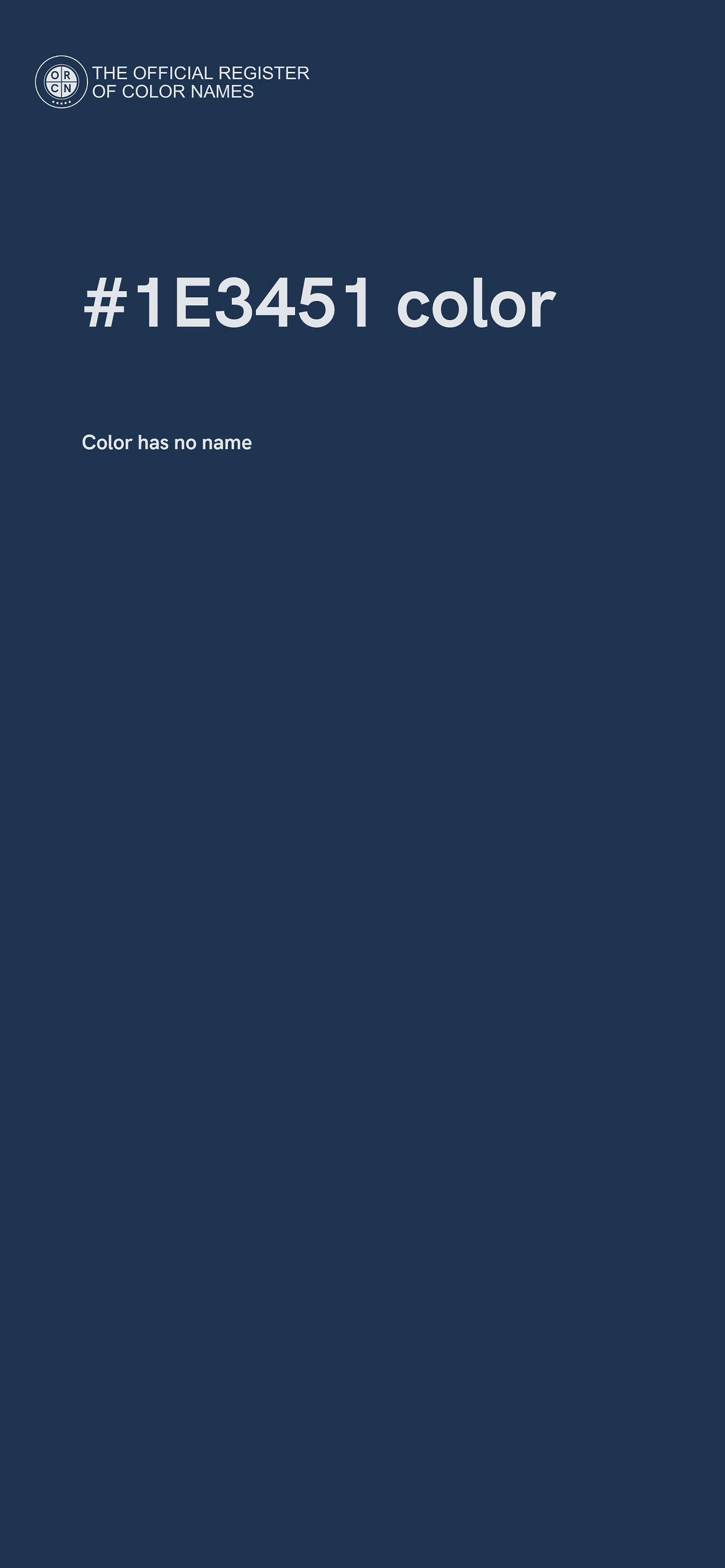 The digital color HEX #1E3451 belongs to the Azure Color Family featuring Moderate Saturation (Saturation Family) and Dark (Brightness Family).