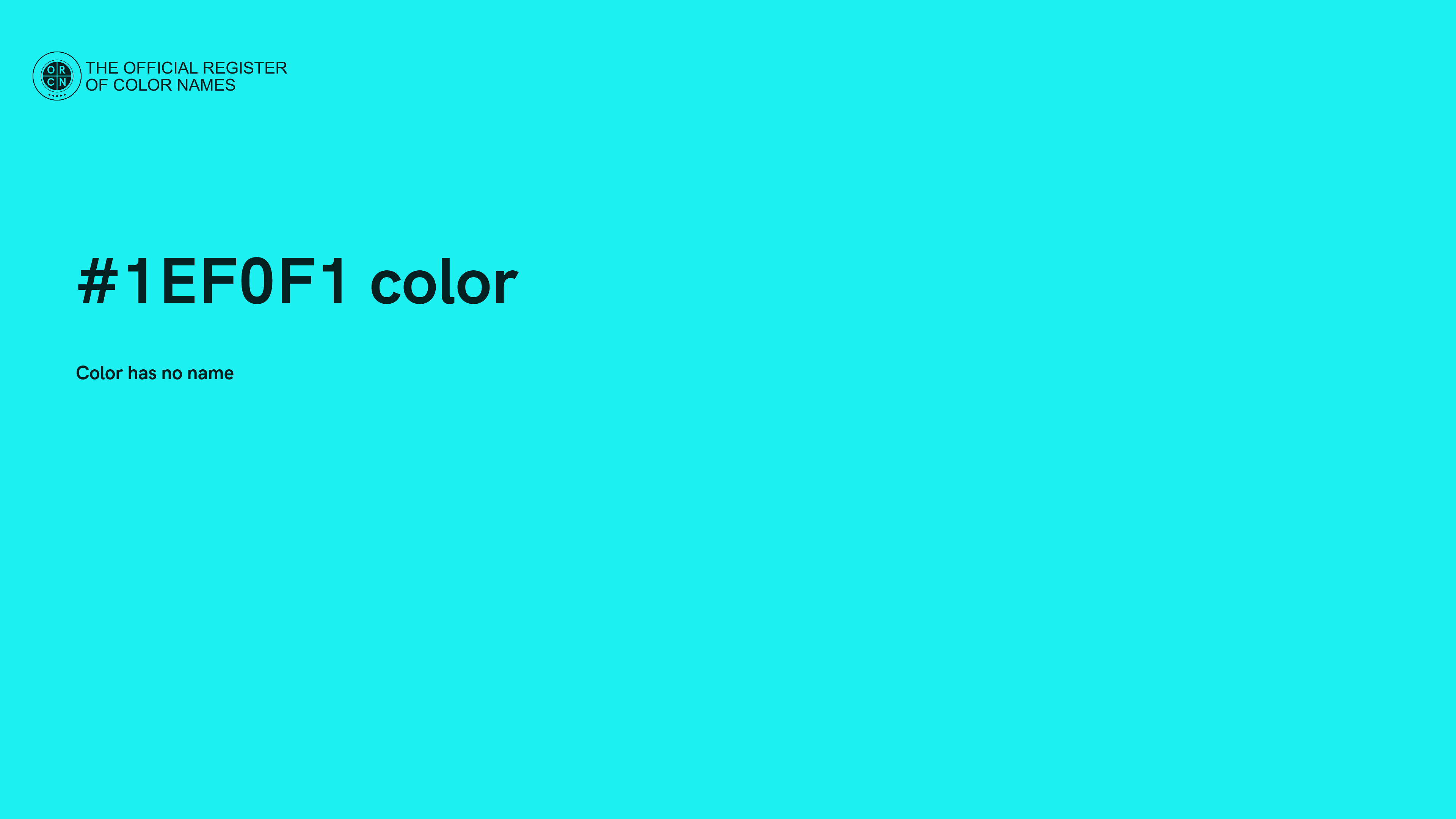 The digital color HEX #1EF0F1 belongs to the Cyan Color Family featuring Full Saturation (Saturation Family) and Light (Brightness Family).