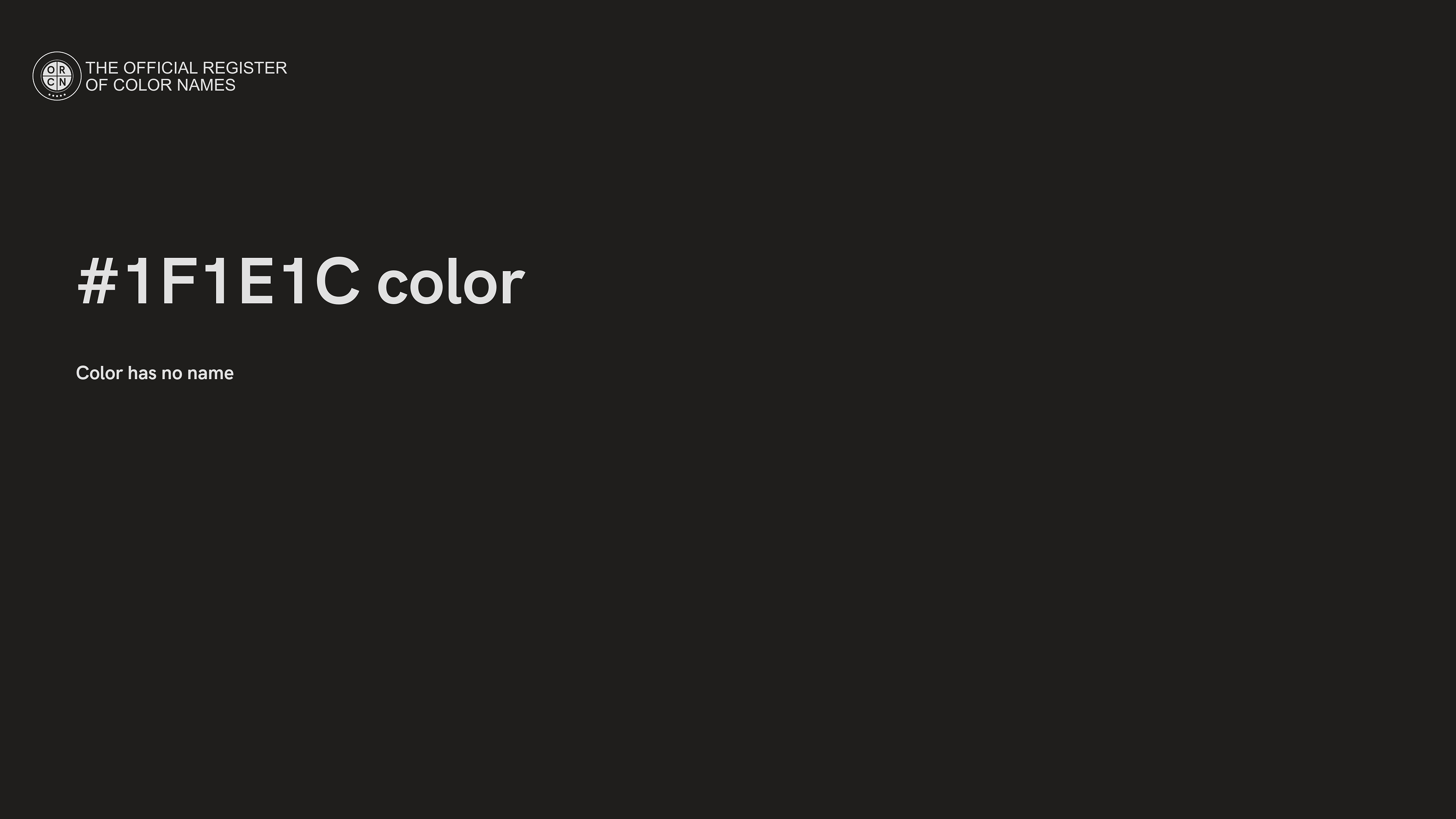 The digital color HEX #1F1E1C belongs to the Orange Color Family featuring Desaturated (Saturation Family) and Dark (Brightness Family).