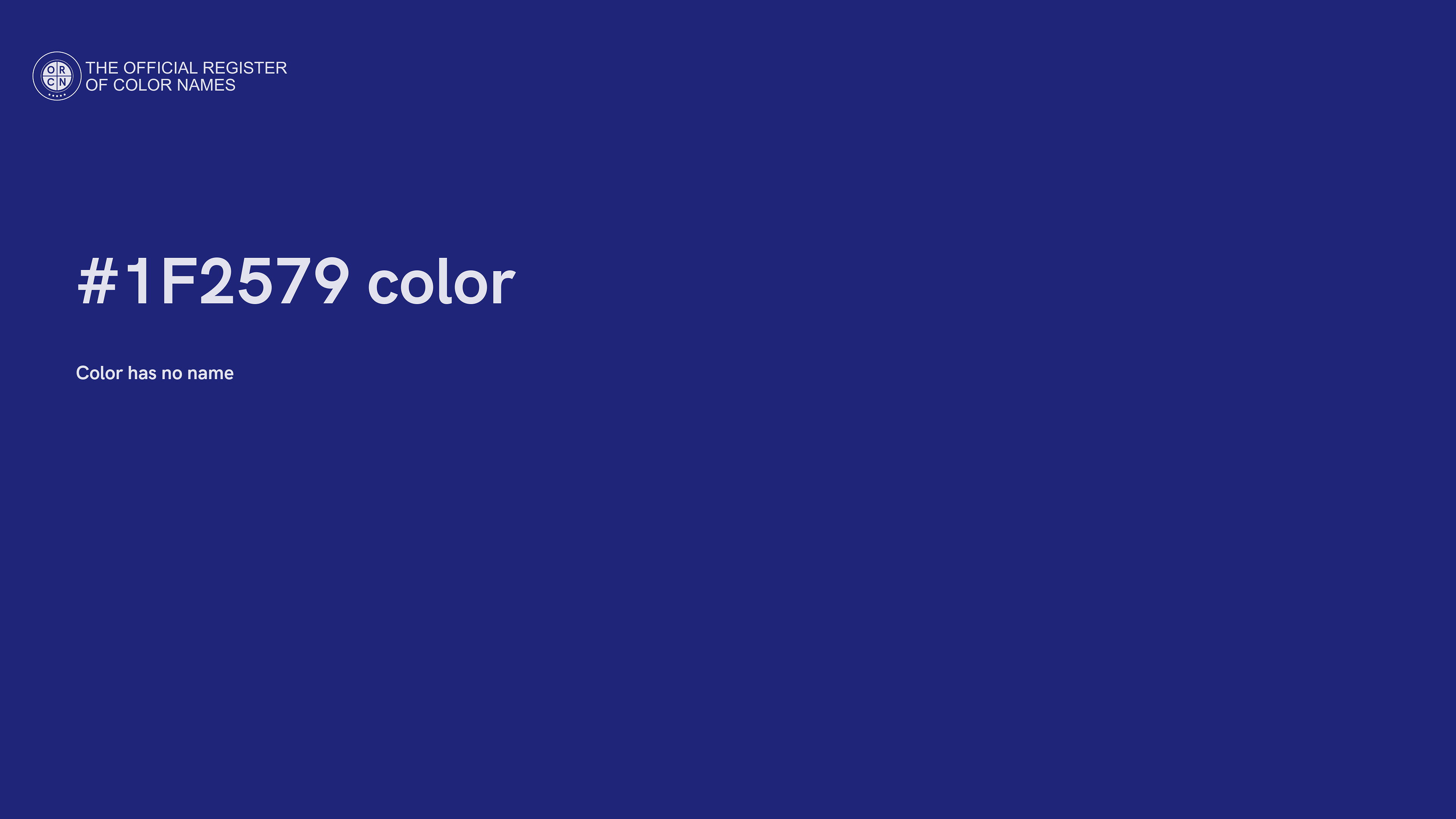 The digital color HEX #1F2579 belongs to the Blue Color Family featuring Moderate Saturation (Saturation Family) and Neutral (Brightness Family).