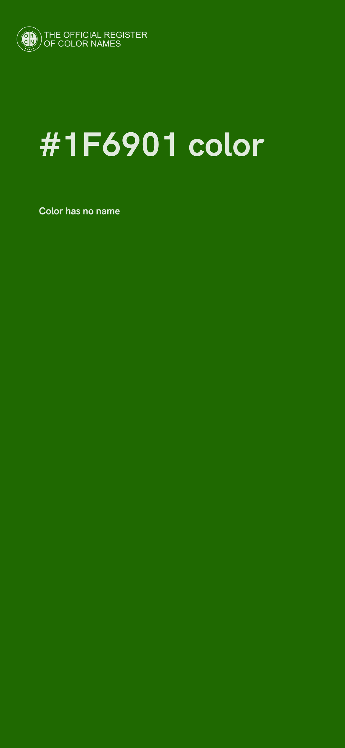 The digital color HEX #1F6901 belongs to the Chartreuse Color Family featuring Full Saturation (Saturation Family) and Dark (Brightness Family).