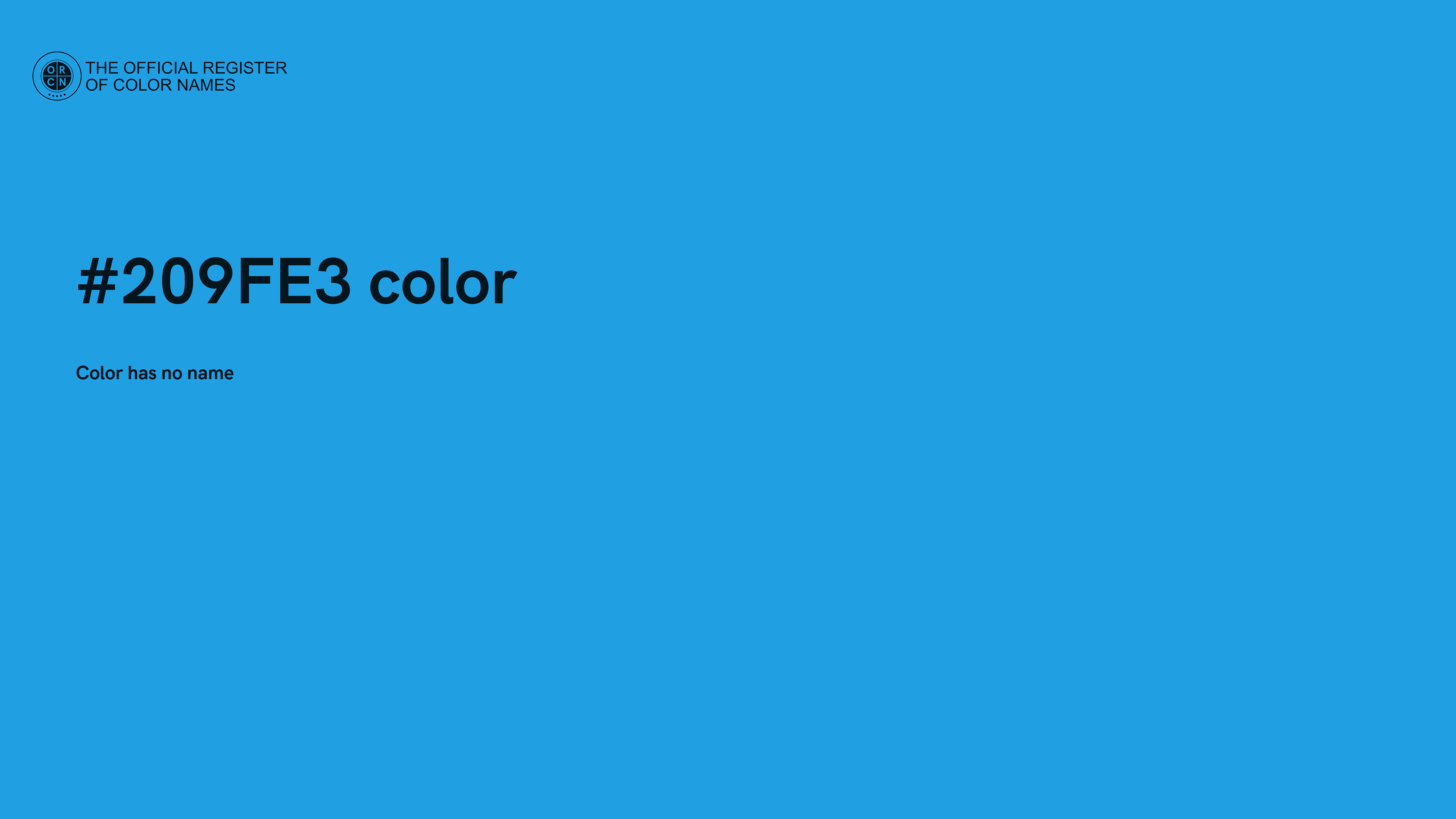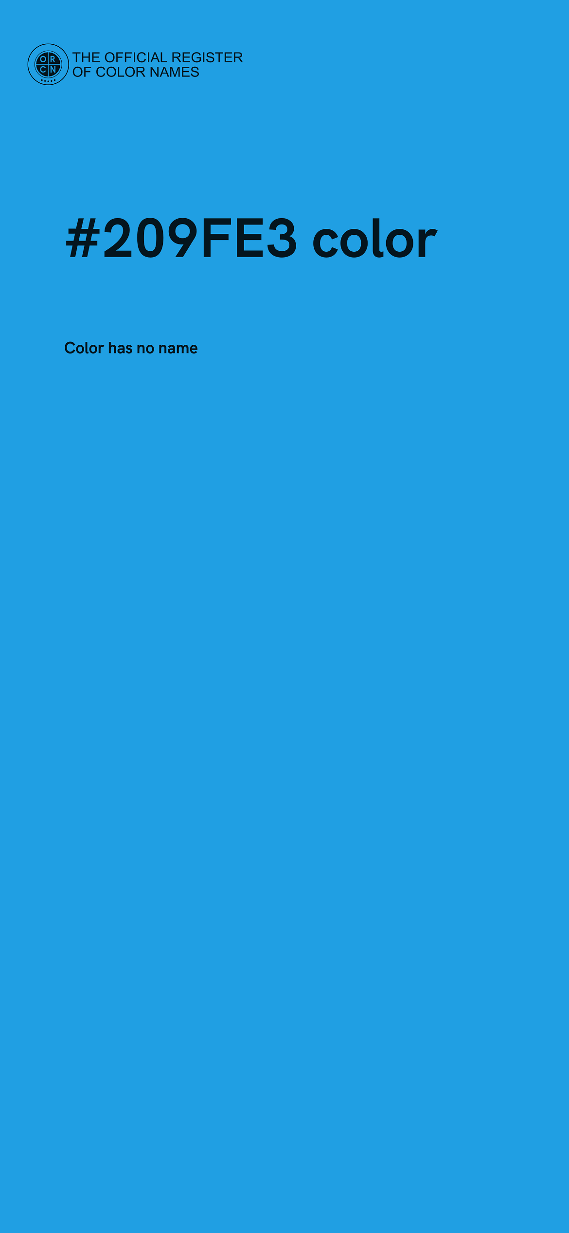 The digital color HEX #209FE3 belongs to the Azure Color Family featuring High Saturation (Saturation Family) and Light (Brightness Family).