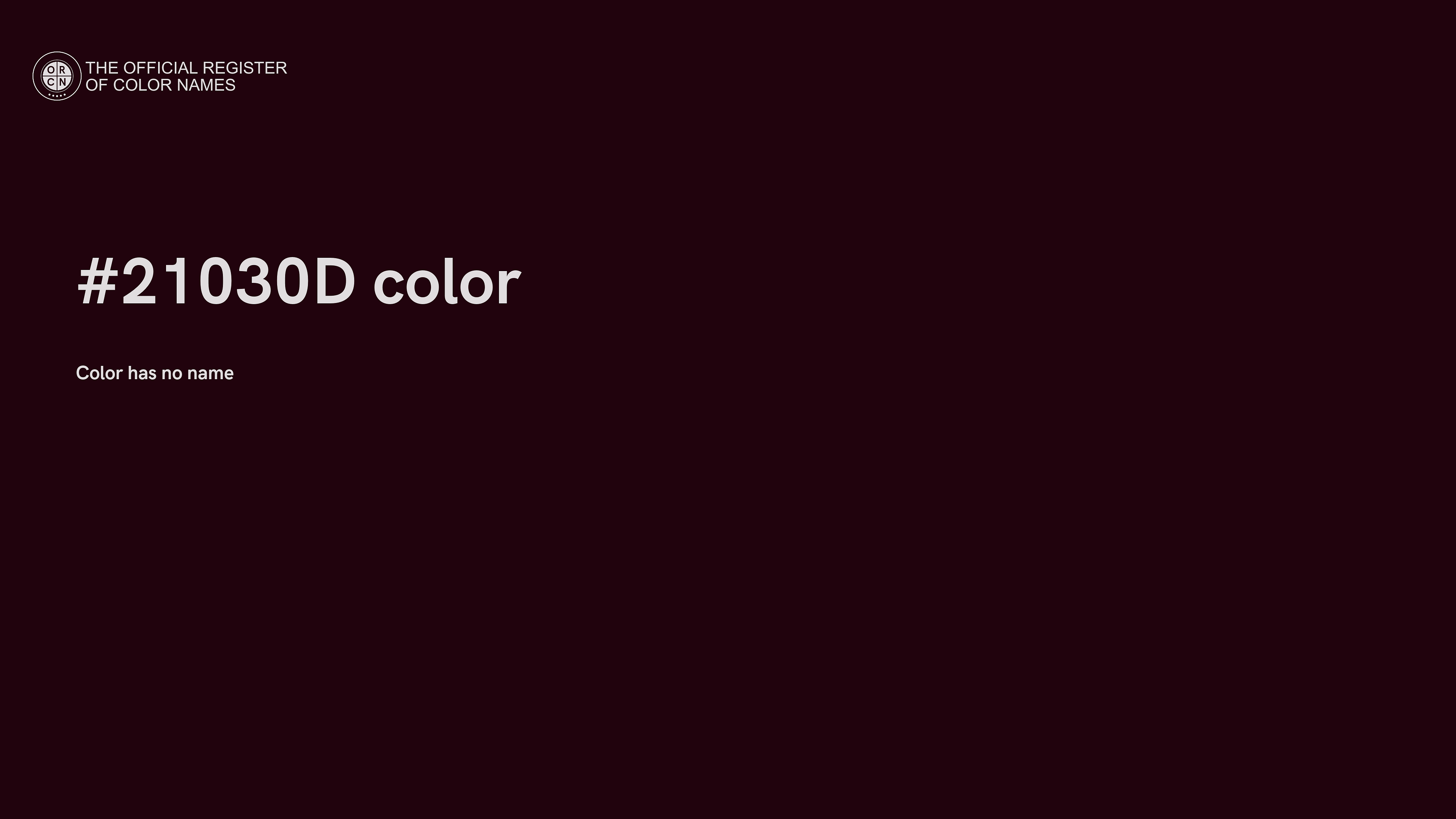 For printing in non digital world, #21030D is represented in CMYK as 0 Cyan, 12 Magenta, 8 Yellow, and 87 Black (Key) (C:0 M:12 Y:8 K:87).
