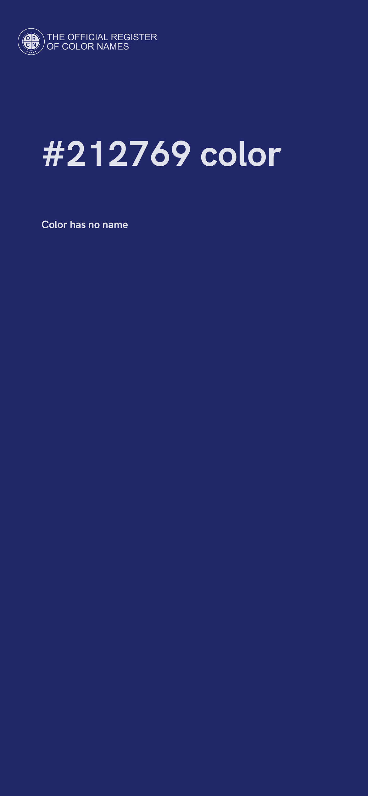 The digital color HEX #212769 belongs to the Blue Color Family featuring Moderate Saturation (Saturation Family) and Neutral (Brightness Family).