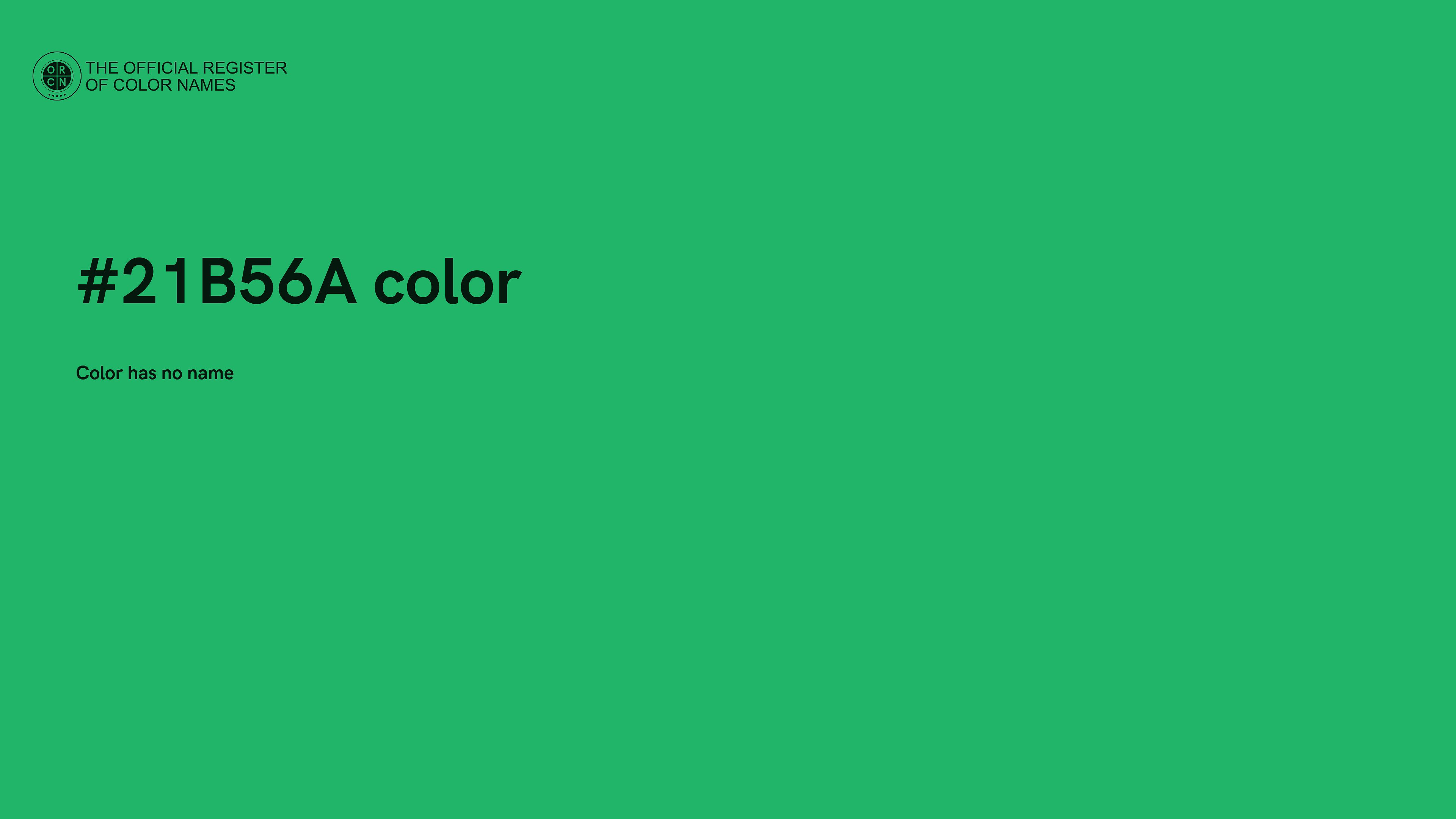 The digital color HEX #21B56A belongs to the Spring Green Color Family featuring High Saturation (Saturation Family) and Light (Brightness Family).