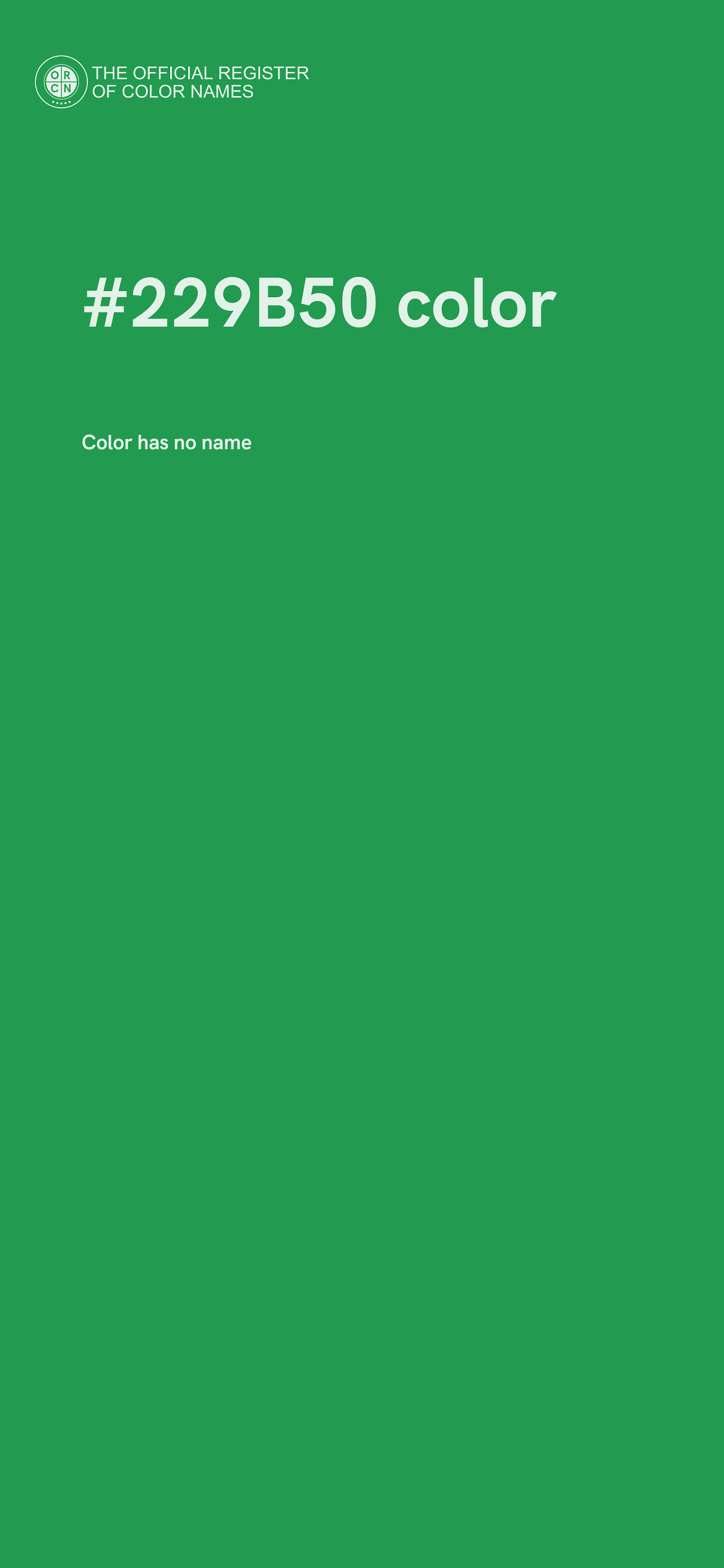 The digital color HEX #229B50 belongs to the Spring Green Color Family featuring High Saturation (Saturation Family) and Neutral (Brightness Family).