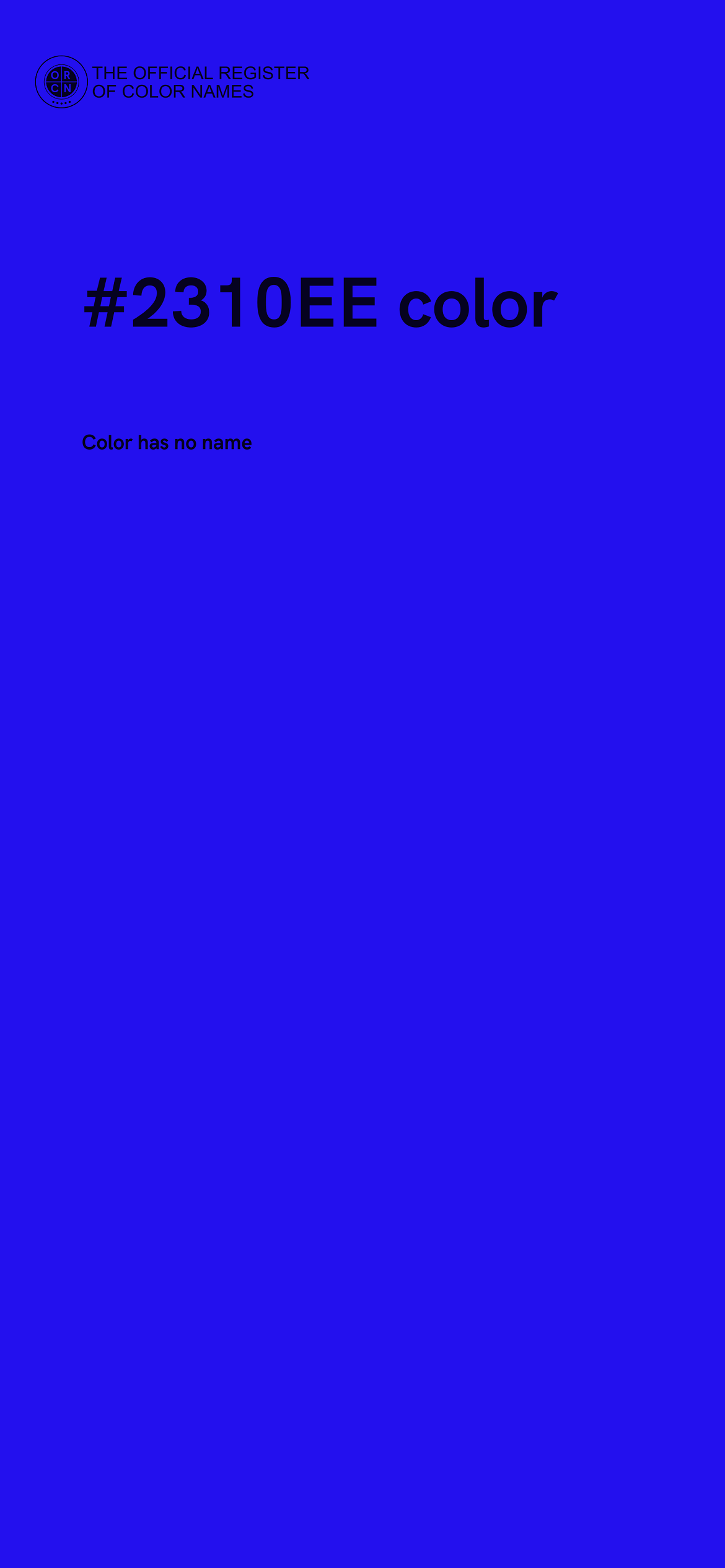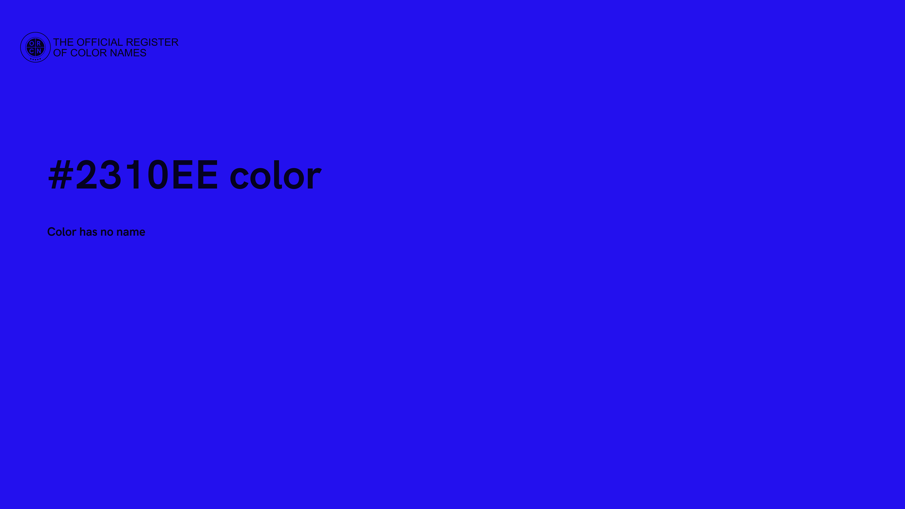 For printing in non digital world, #2310EE is represented in CMYK as 80 Cyan, 87 Magenta, 0 Yellow, and 7 Black (Key) (C:80 M:87 Y:0 K:7).
