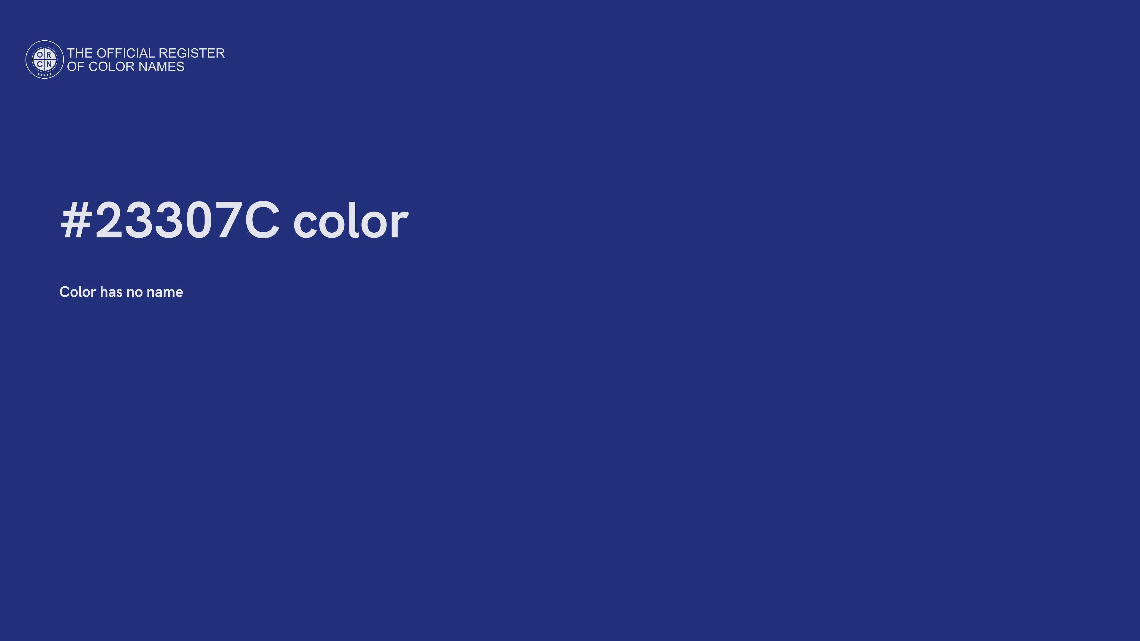 For printing in non digital world, #23307C is represented in CMYK as 35 Cyan, 30 Magenta, 0 Yellow, and 51 Black (Key) (C:35 M:30 Y:0 K:51).