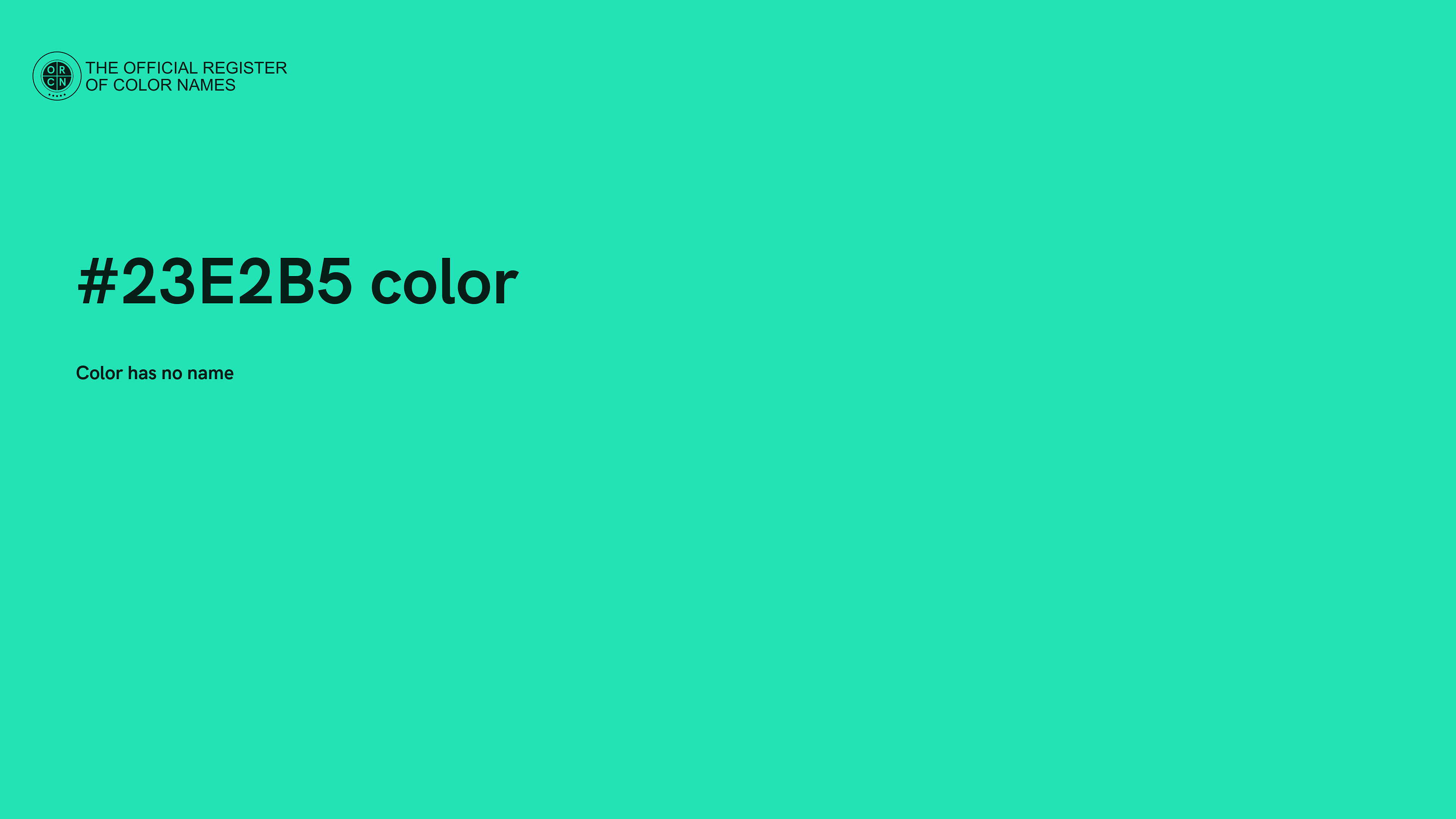 The digital color HEX #23E2B5 belongs to the Cyan Color Family featuring High Saturation (Saturation Family) and Light (Brightness Family).