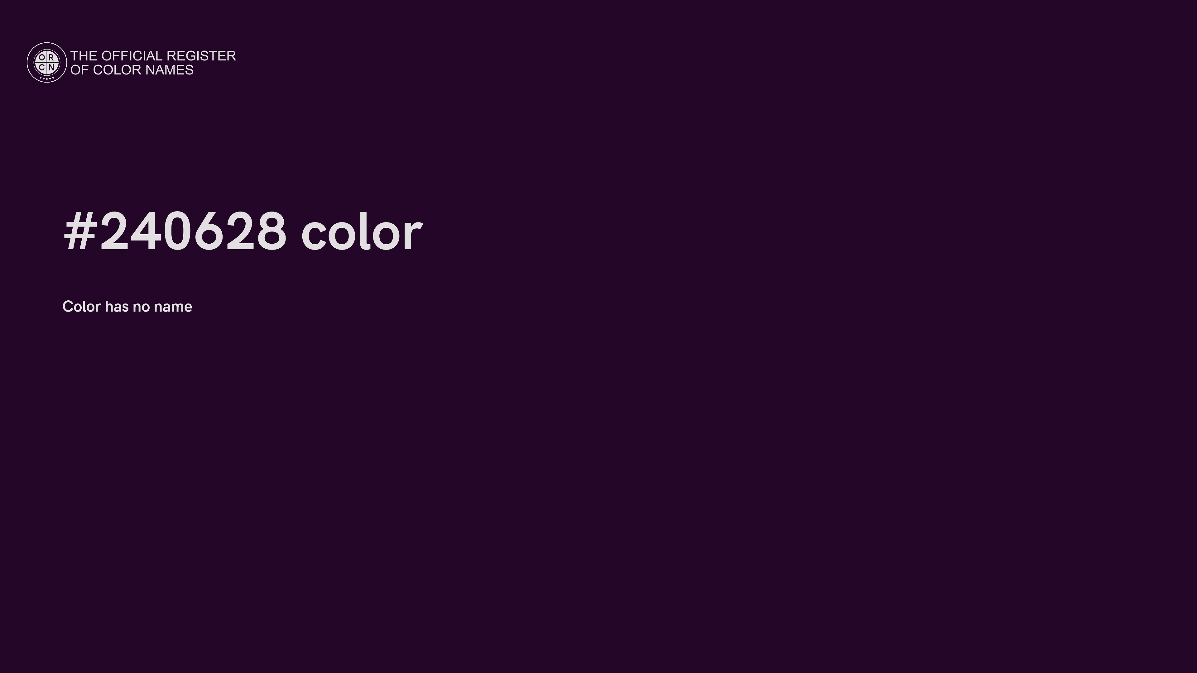 The digital color HEX #240628 belongs to the Magenta Color Family featuring High Saturation (Saturation Family) and Very Dark (Brightness Family).