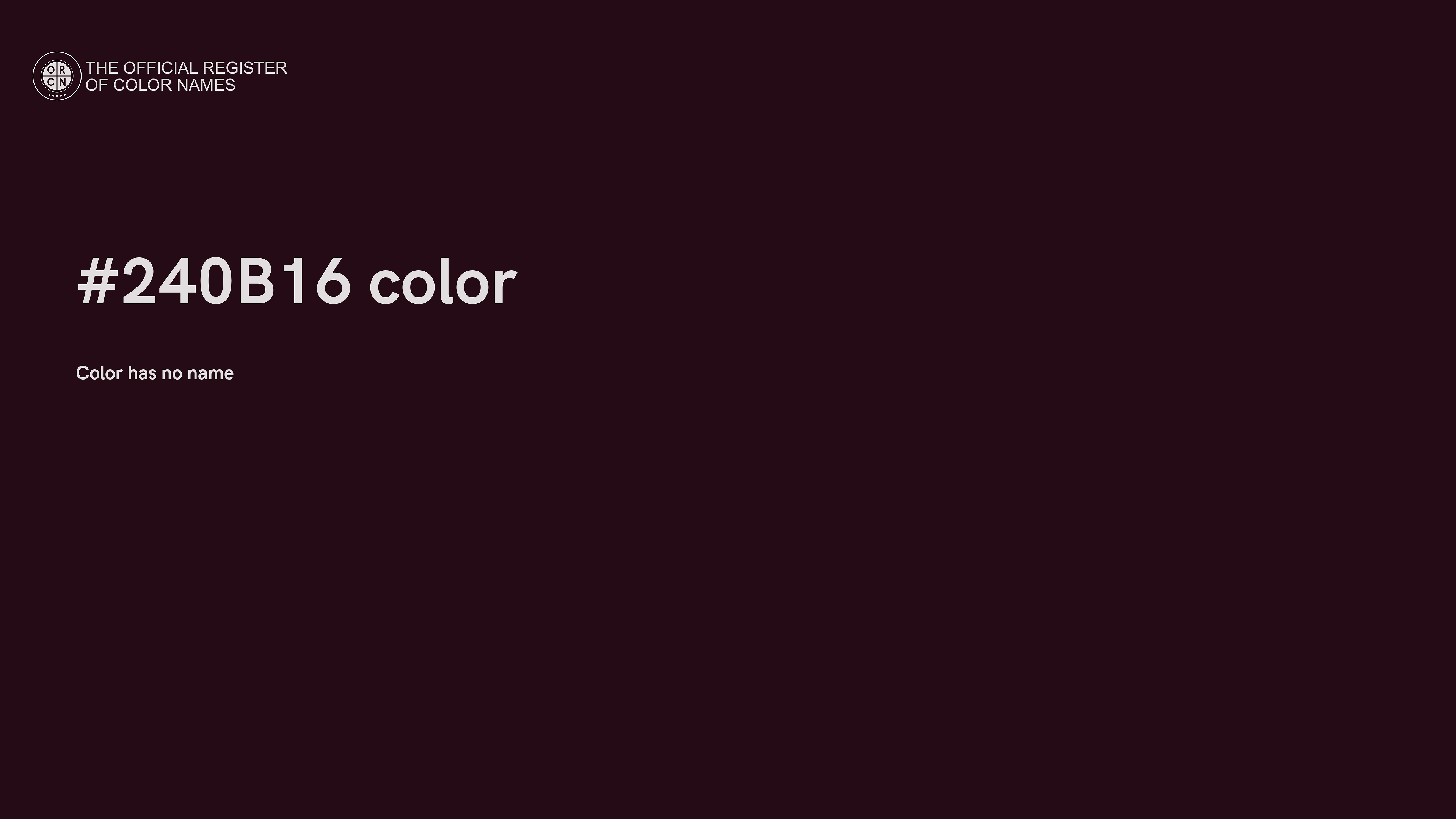 For printing in non digital world, #240B16 is represented in CMYK as 0 Cyan, 10 Magenta, 5 Yellow, and 86 Black (Key) (C:0 M:10 Y:5 K:86).