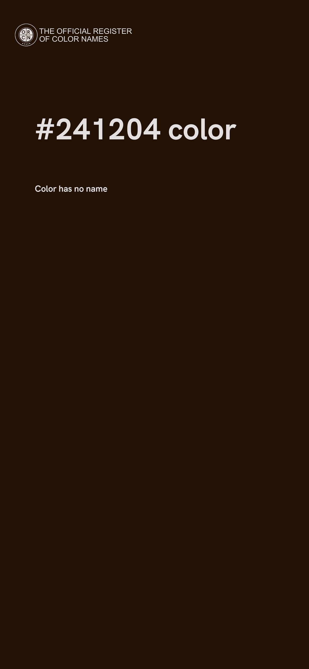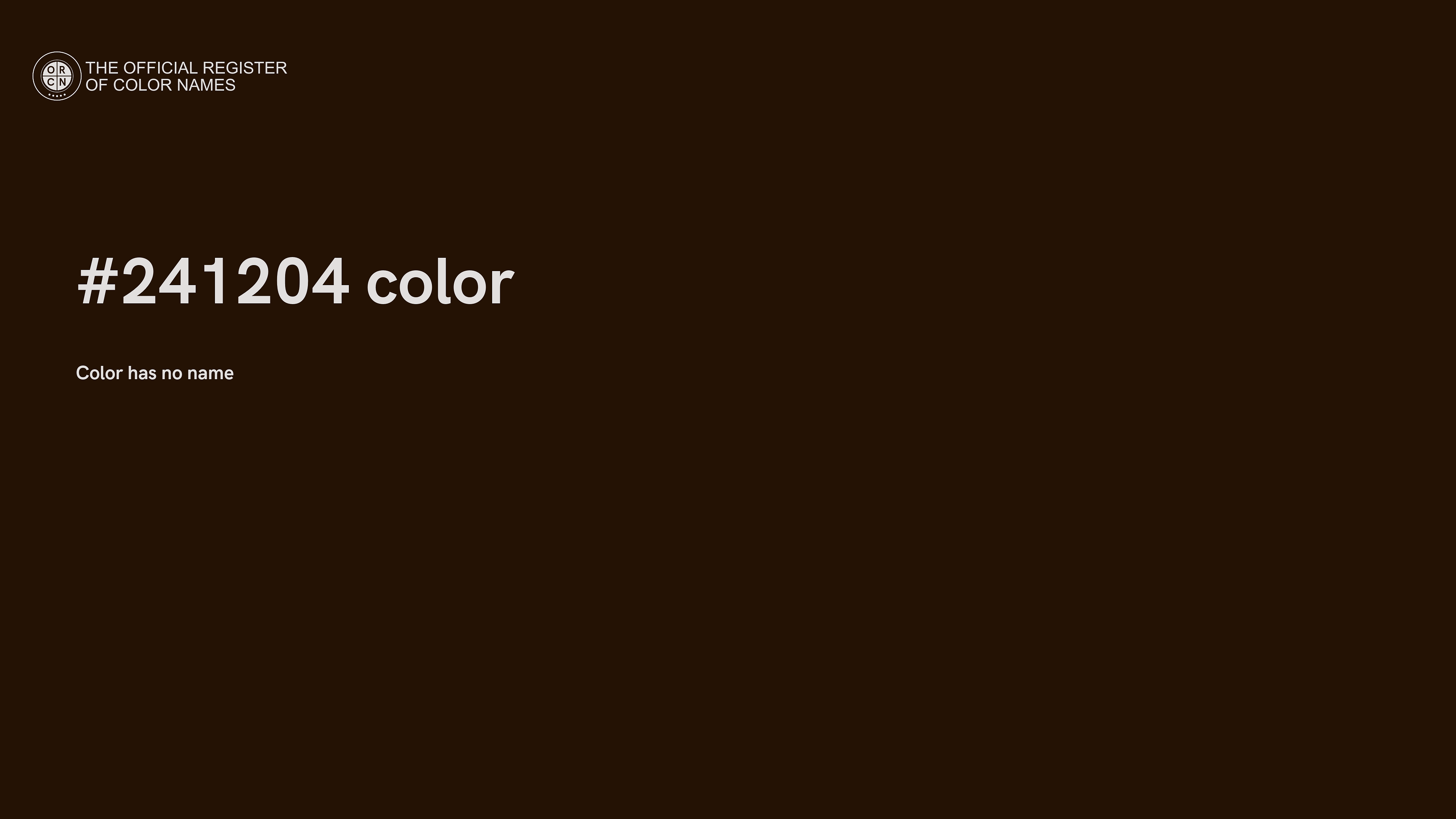 The digital color HEX #241204 belongs to the Orange Color Family featuring High Saturation (Saturation Family) and Very Dark (Brightness Family).