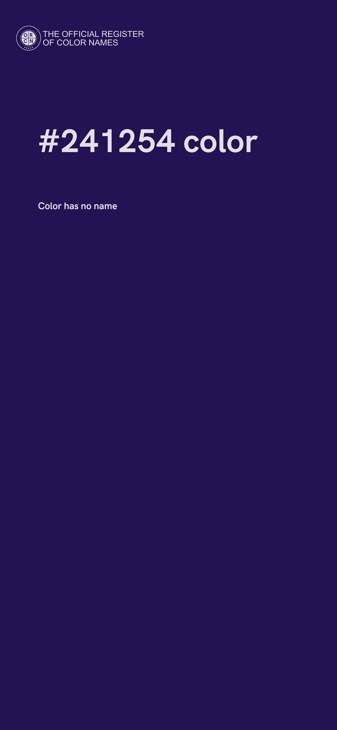 The digital color HEX #241254 belongs to the Violet Color Family featuring High Saturation (Saturation Family) and Dark (Brightness Family).