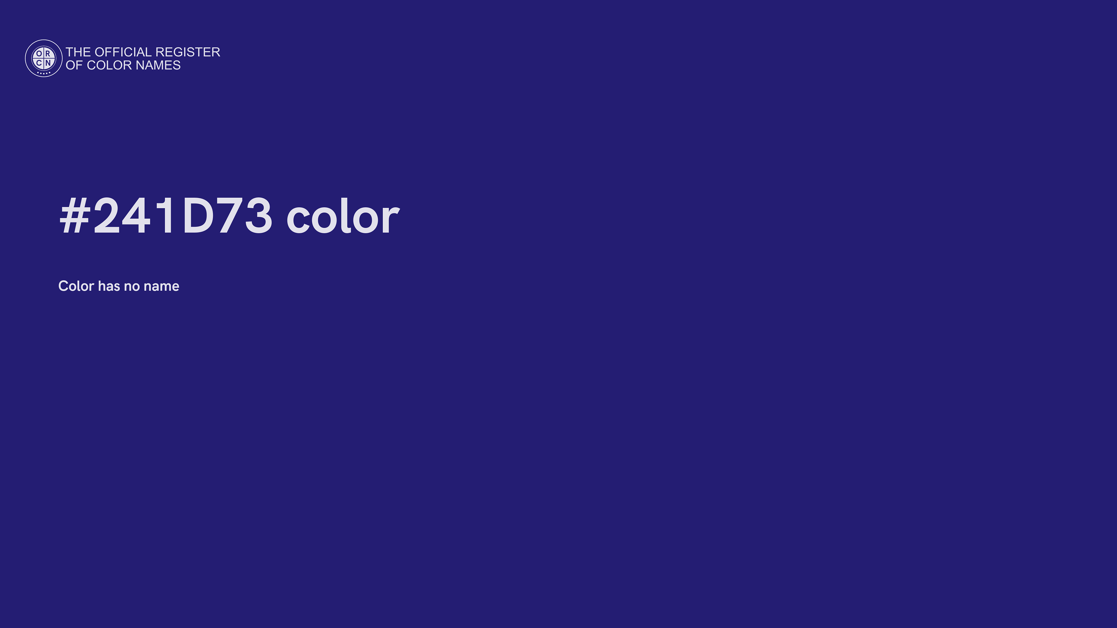 The digital color HEX #241D73 belongs to the Blue Color Family featuring High Saturation (Saturation Family) and Neutral (Brightness Family).