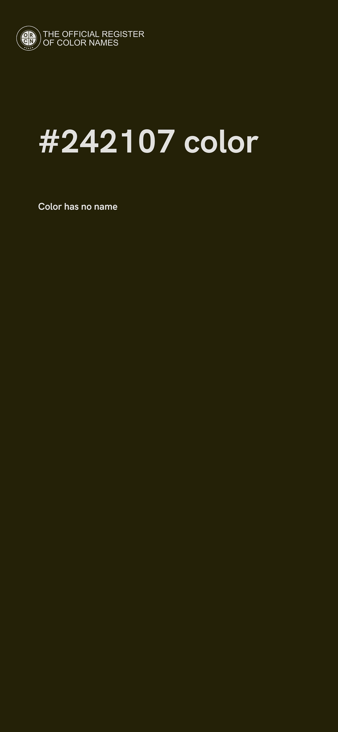 For printing in non digital world, #242107 is represented in CMYK as 0 Cyan, 1 Magenta, 11 Yellow, and 86 Black (Key) (C:0 M:1 Y:11 K:86).