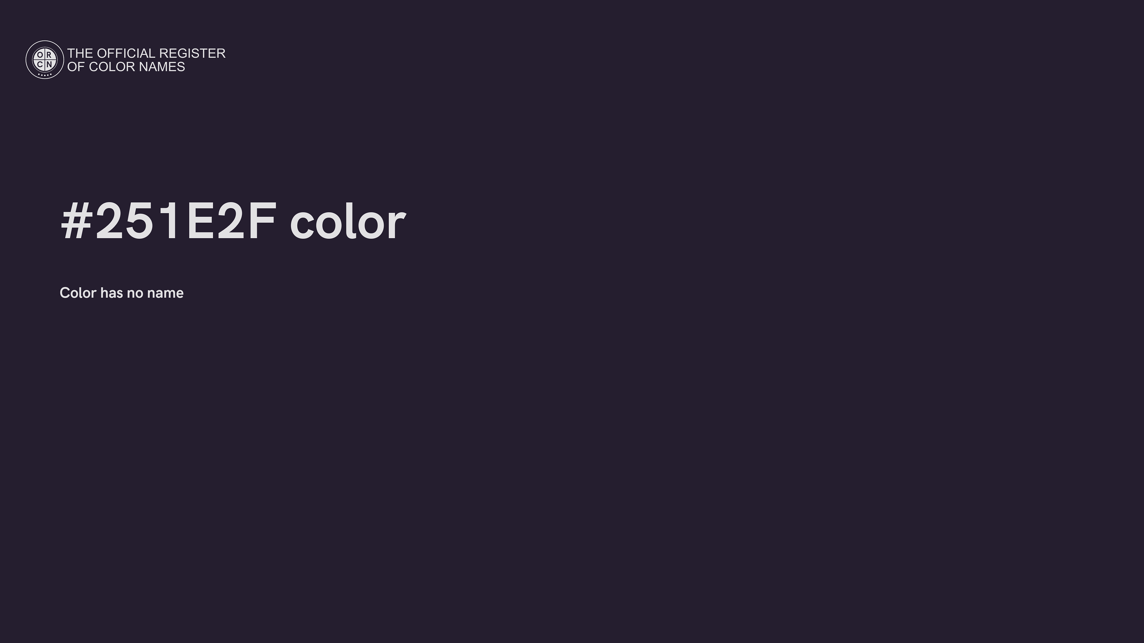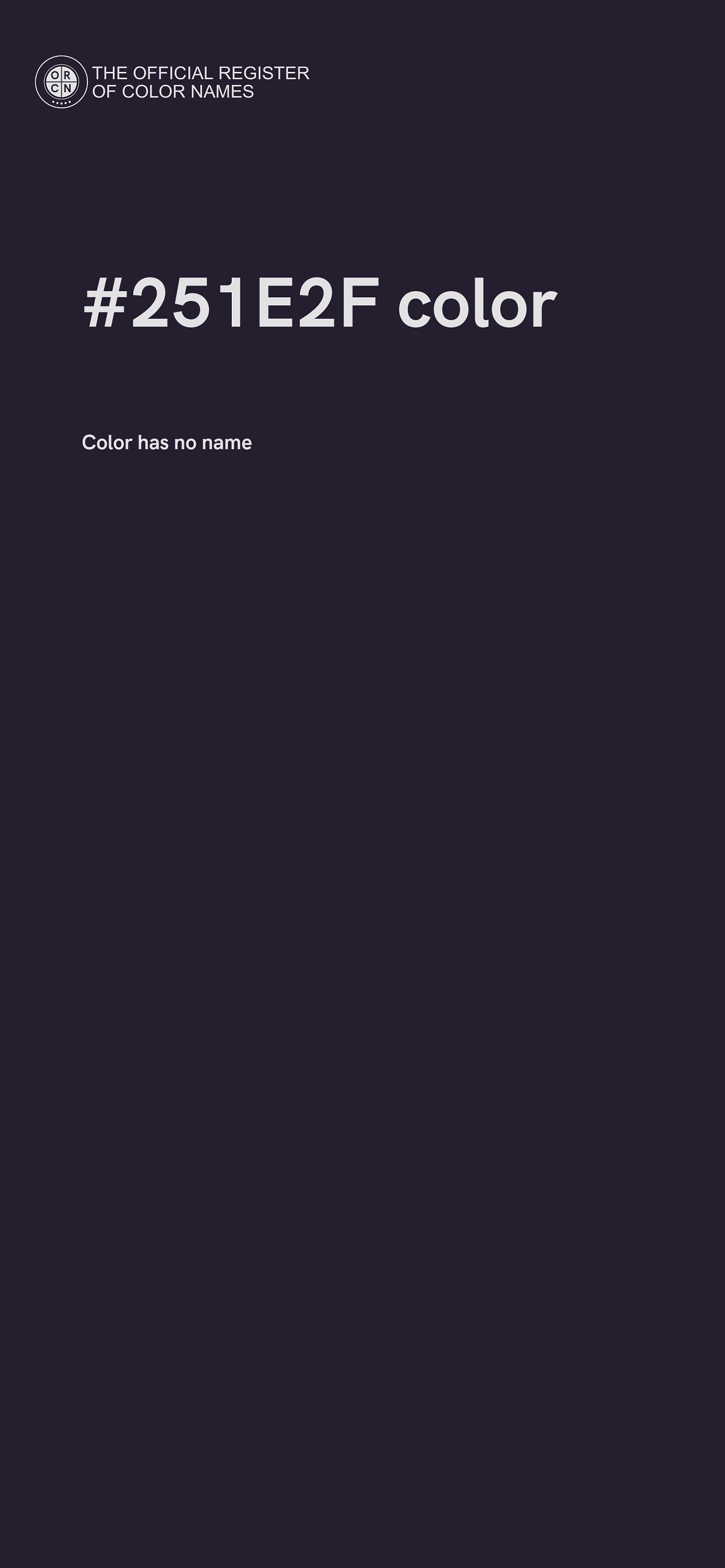 The digital color HEX #251E2F belongs to the Violet Color Family featuring Low Saturation (Saturation Family) and Dark (Brightness Family).