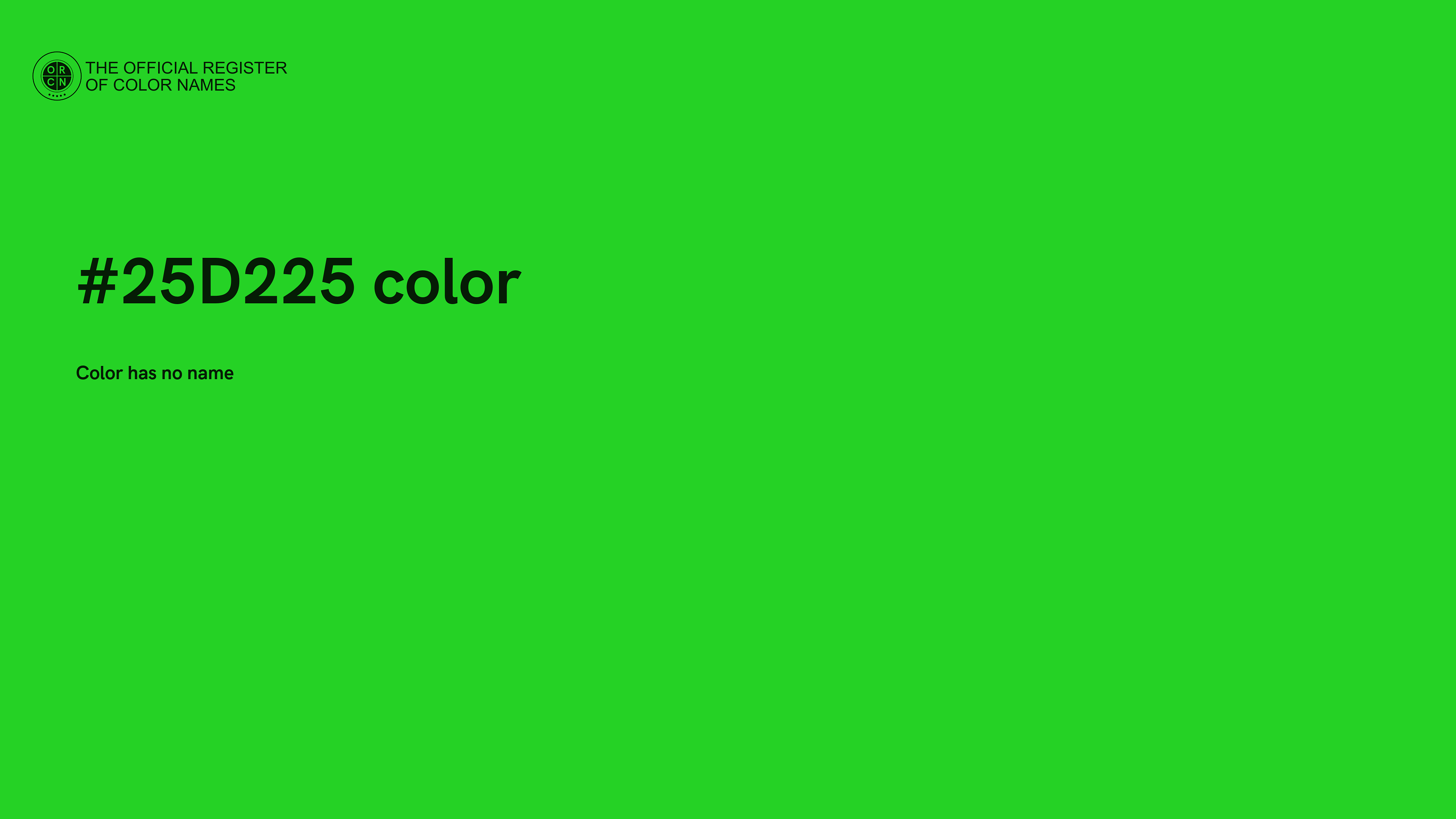 The digital color HEX #25D225 belongs to the Green Color Family featuring High Saturation (Saturation Family) and Light (Brightness Family).